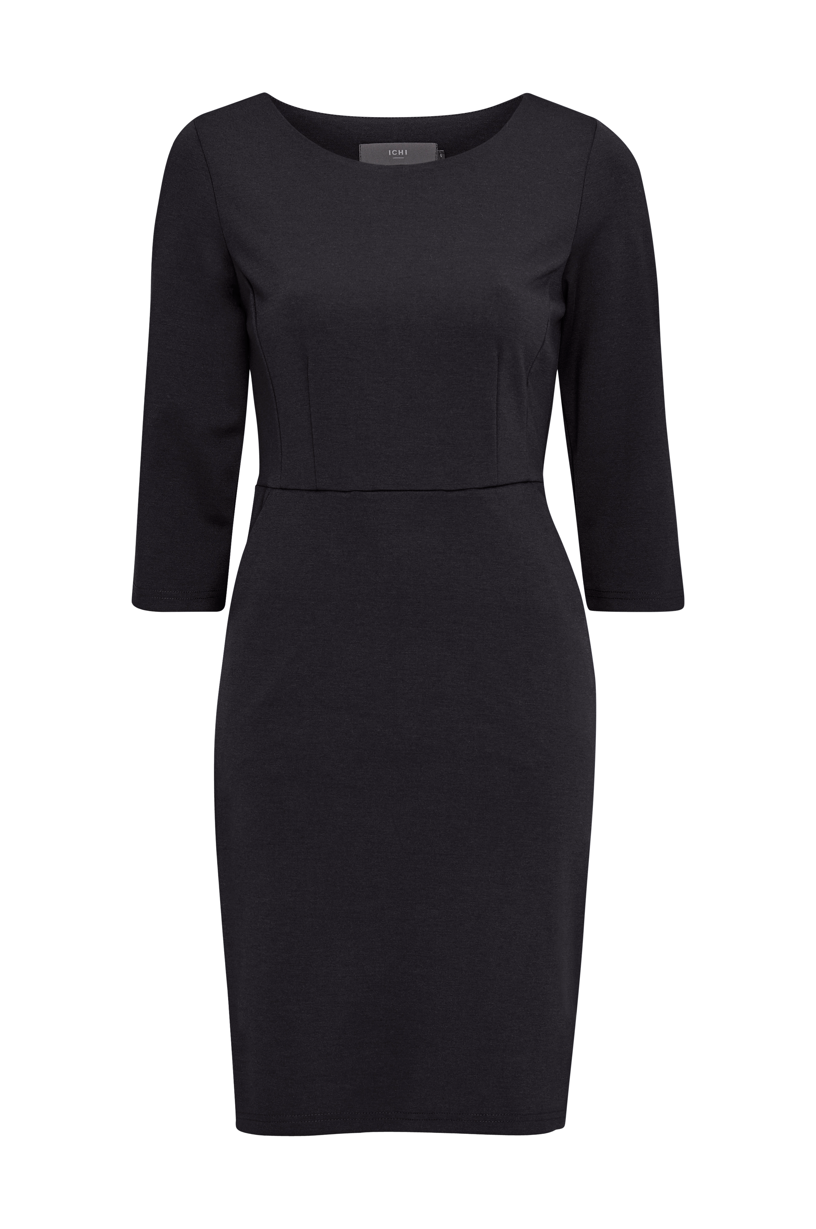 ICHI Kate Slim Dress -mekko. Vartalonmyötäinen malli napakkaa stretchtrikoota. Pyöreä pääntie ja suorat 3/4-pituiset hihat. Poikkileikkaus vyötäröllä ympäriinsä. Viistot taskut edessä. Halkio takana helmassa. Pituus n. 95 cm koossa S.