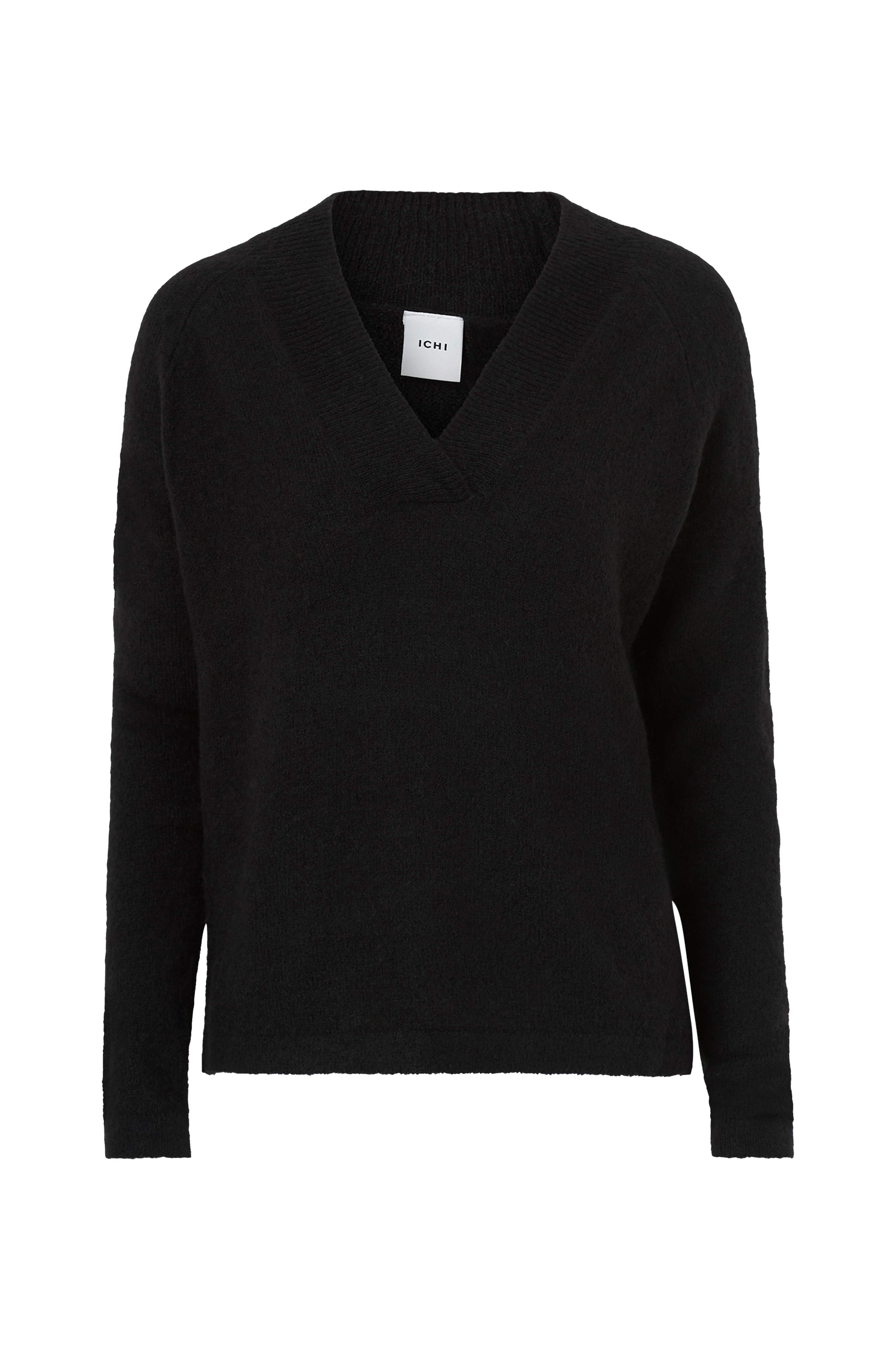 ICHI ihAmara V LS Pullover -neulepusero. Ohut neule pörröistä lankaa. V-pääntie, jossa kietaisumallinen joustinneulereunus keskellä edessä. Suora malli, jossa kapea päärme helmassa ja hihansuissa.