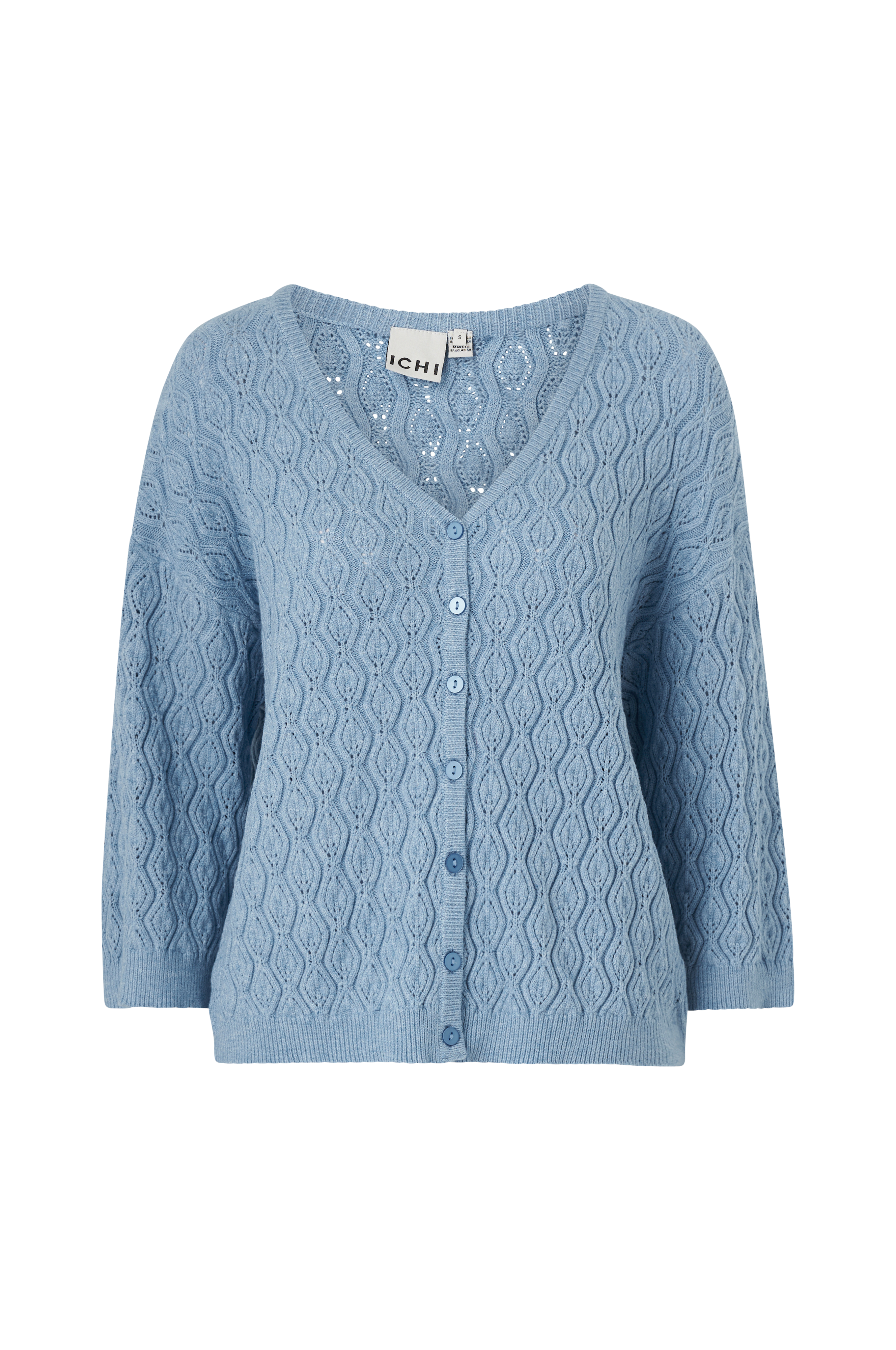 • Kuvioneulottu malli• V-muotoinen kaula• Napit edessä• Pudotettu olkapää• Suora hiha• Resorimaiset reunat