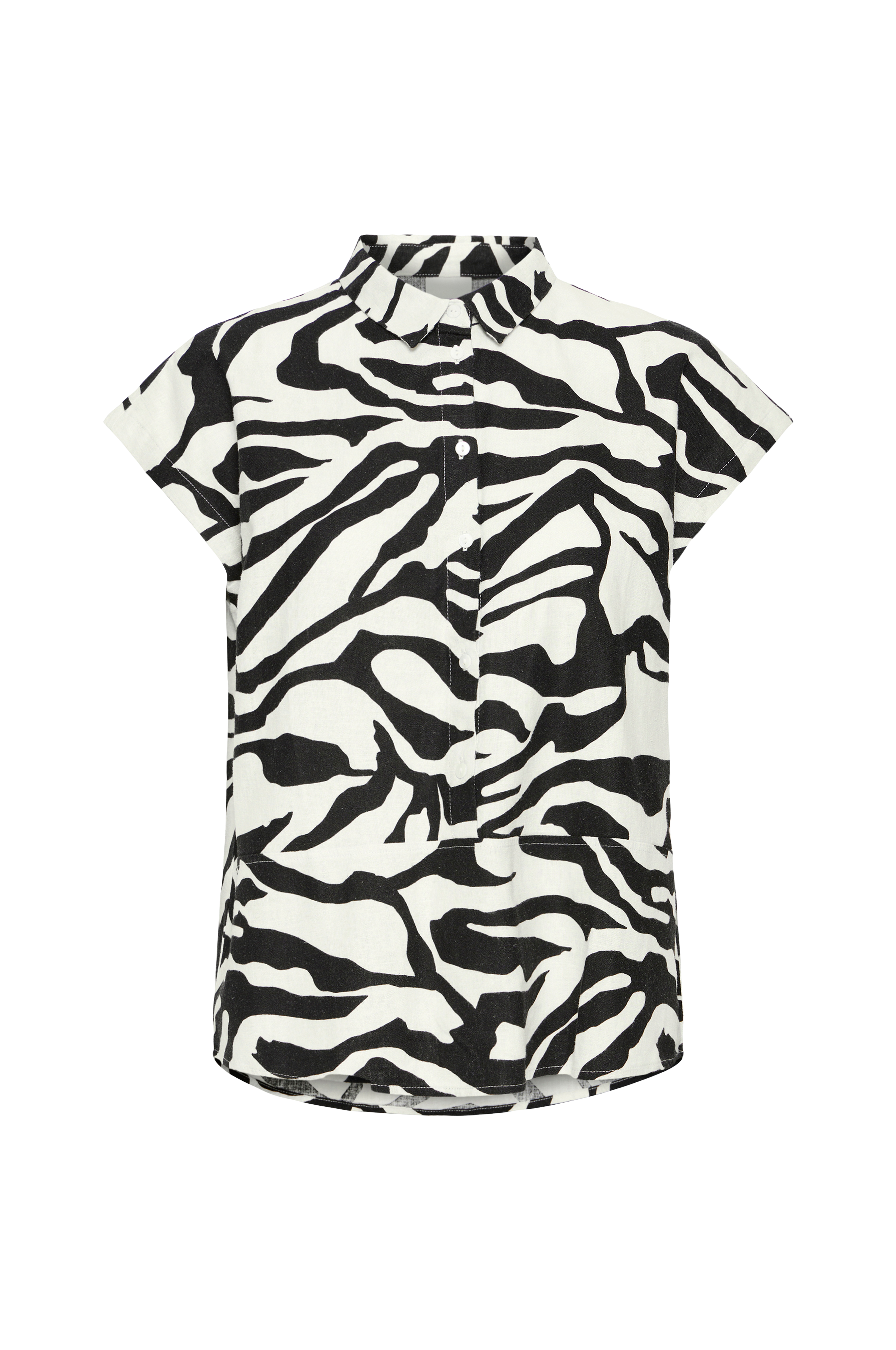 • Lyhythihainen pusero pellavasekoitteesta• Napit• Sileä röyhelö alahelmassa