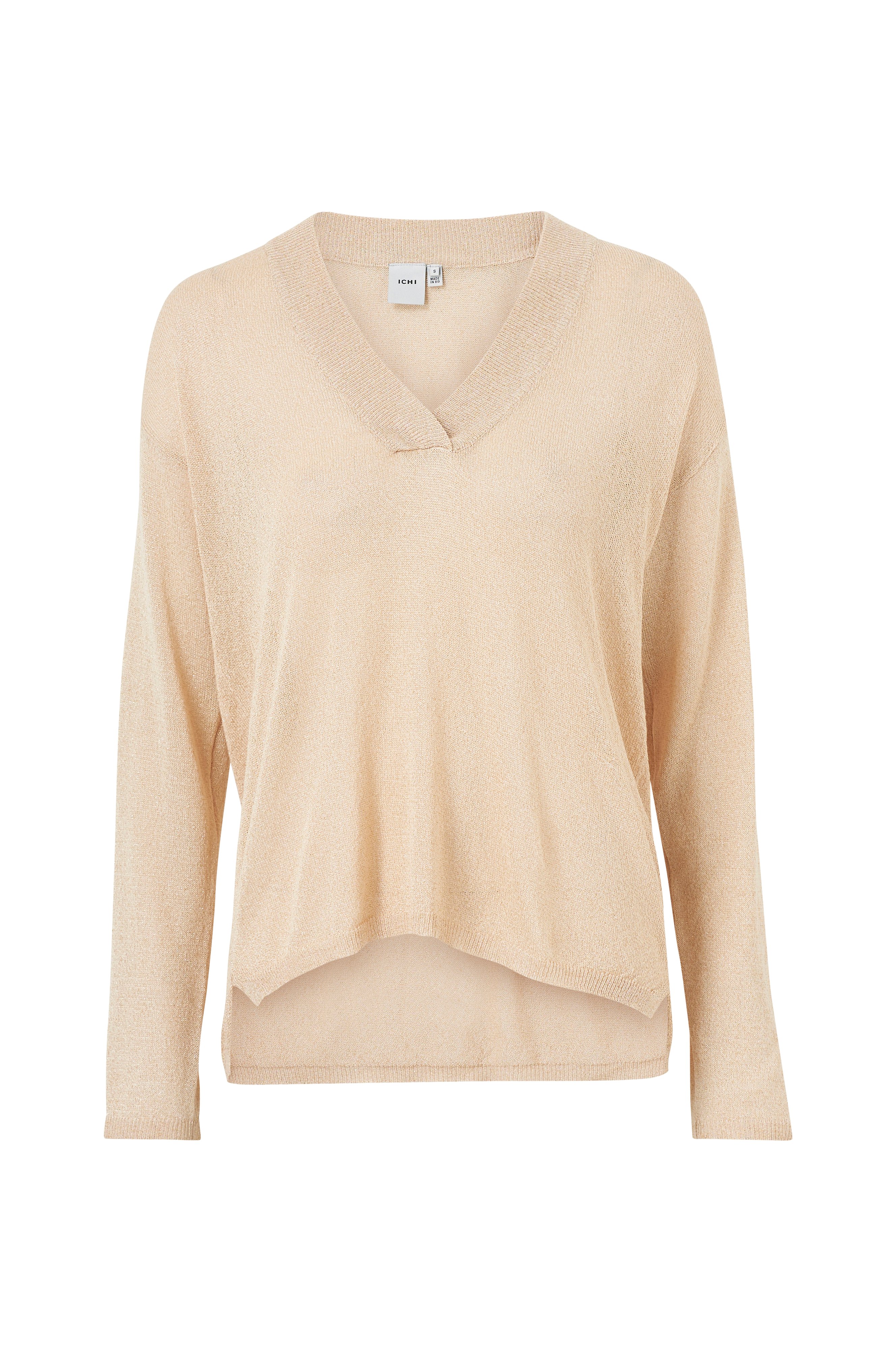 ICHI ihToronto LS5 Pullover -pusero. Ohutta, sileää neuletta, jossa kimallelankaa. Suora malli, jossa pienet sivuhalkiot helmassa ja hieman pidempi takakappale. Syvä v-pääntie, jossa leveä joustinneulereuna. Kapea joustinneulereuna helmassa ja hihansuissa.