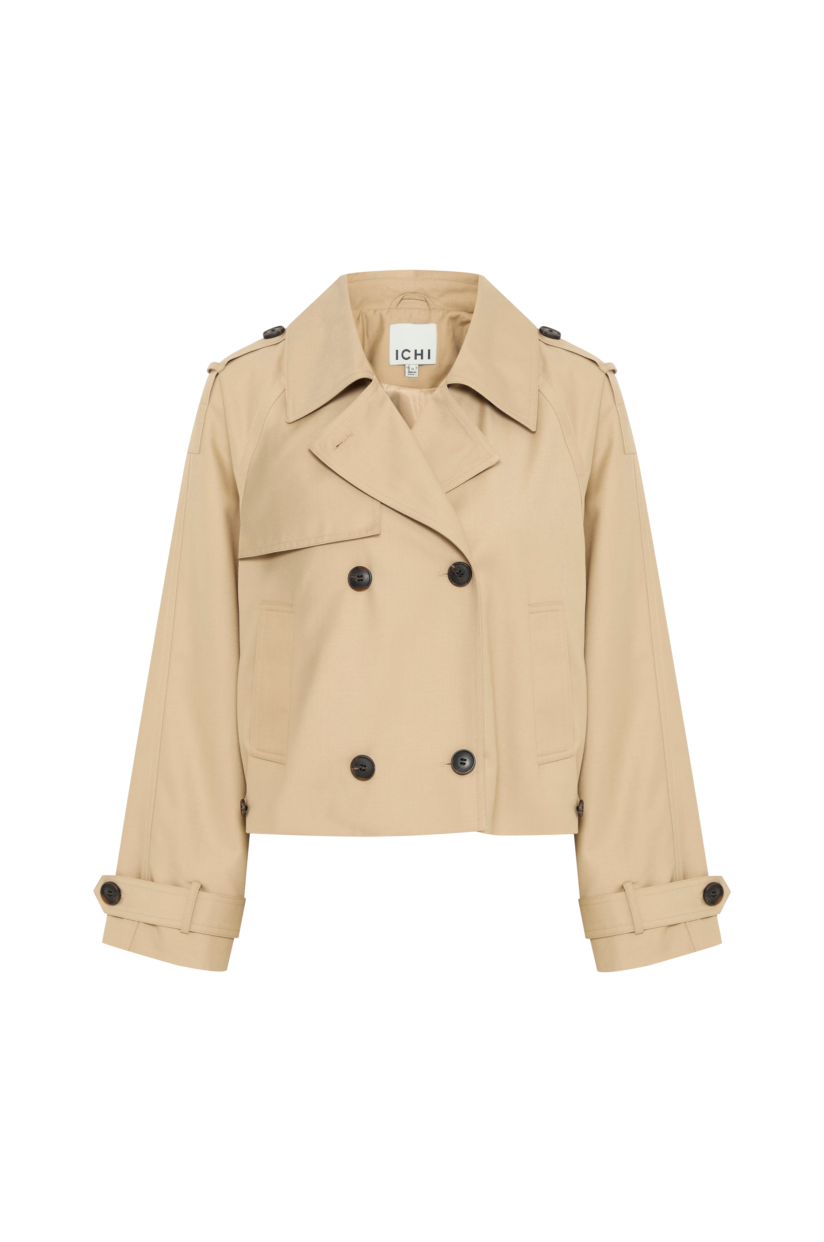 • Lyhyt trenssitakki• Kaksirivinen malli• Leveä istuvuus• Nappiyksityiskohdat kummallakin olkapäällä, hihansuissa ja alhaalla• Löysä istuvuus• Pituus: 55 cm koossa 36