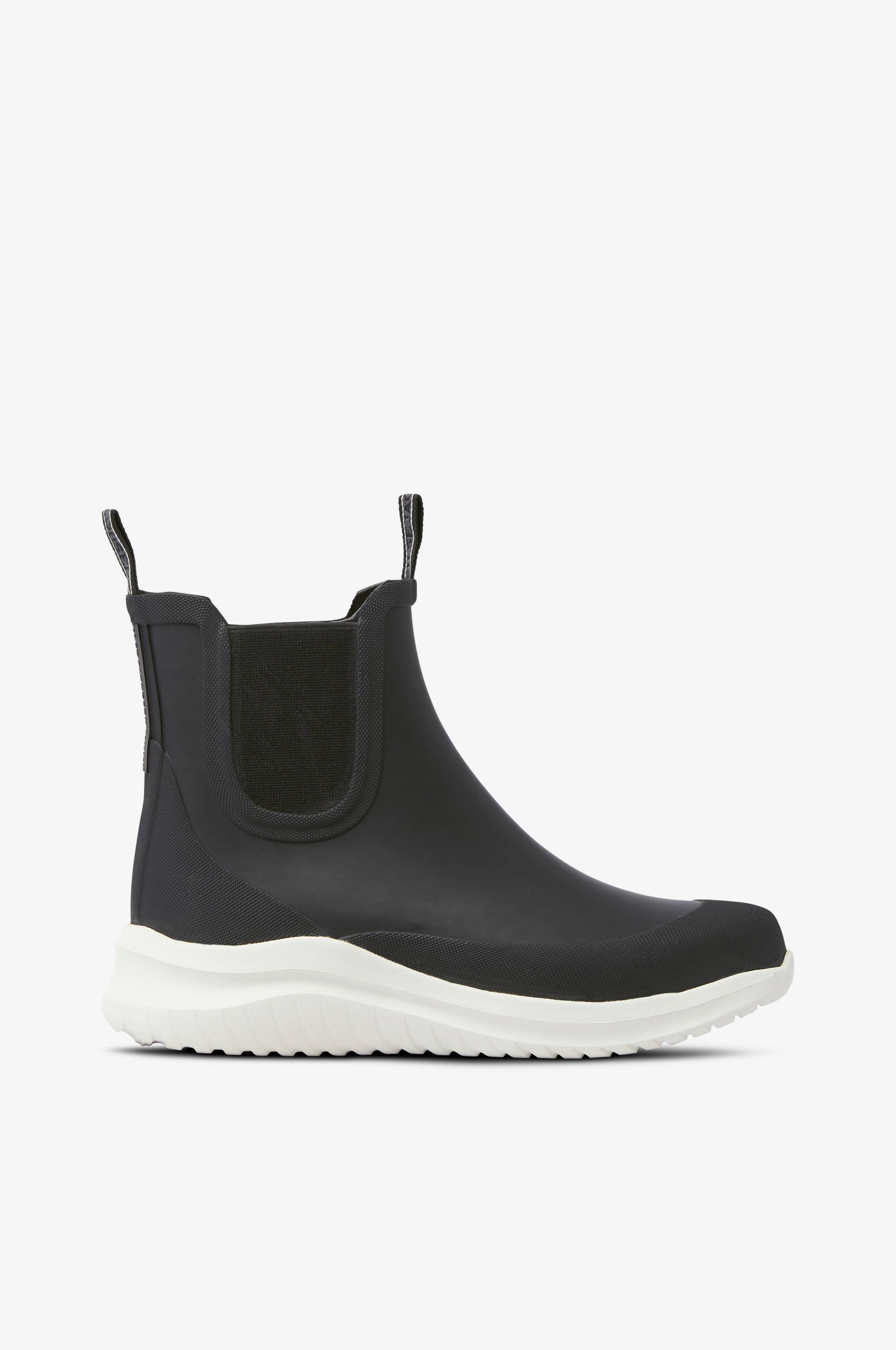 Trendikkäät ja mukavat lyhyet kumisaappaat osittain luonnonkumia. Joustava venyke varren molemmilla sivuilla. Kankainen vetolenkki varressa edessä ja takana. Kangasvuori. Irrotettava, vaimentava sisäpohja. Ulkopohja pitää hyvin liukkaalla alustalla.