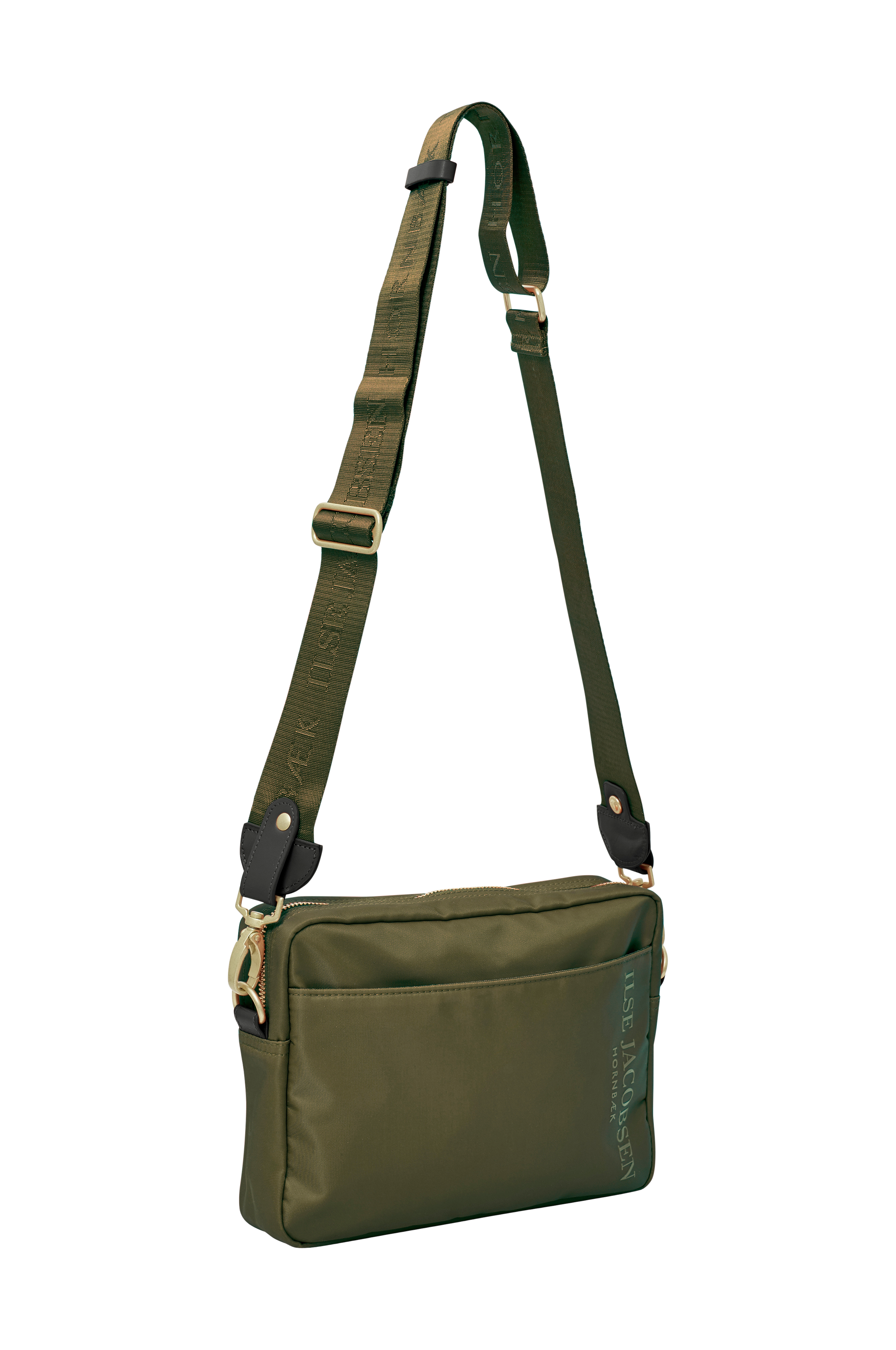 Ilse Jacobsen Rubbag01 -laukku kestävää nailonia, jossa kevyesti kiiltävä pinta. Päälokerossa sisäpuolella vetoketjulokero ja ulkopuolella yksi lokero, jossa logo sävy sävyyn. Leveät, irrotettavat olkaimet kanvaasia, jossa logo. Mitat L 26 x K 19 x S 5,5 cm.