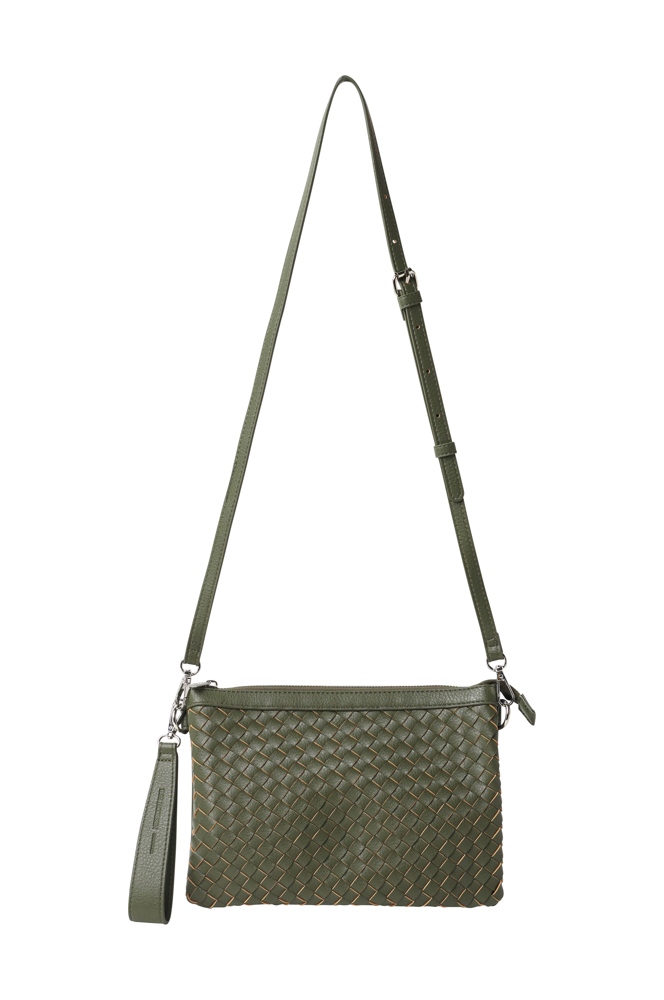 • Laukku keinonahasta letitetyllä kuvioinnilla • Pääosasto vetoketjulla • Irrotettava sanka yhdellä sivulla • Säädettävä, irrotettava olkain • Mitat: B 26 x H 18 x D 8 cm