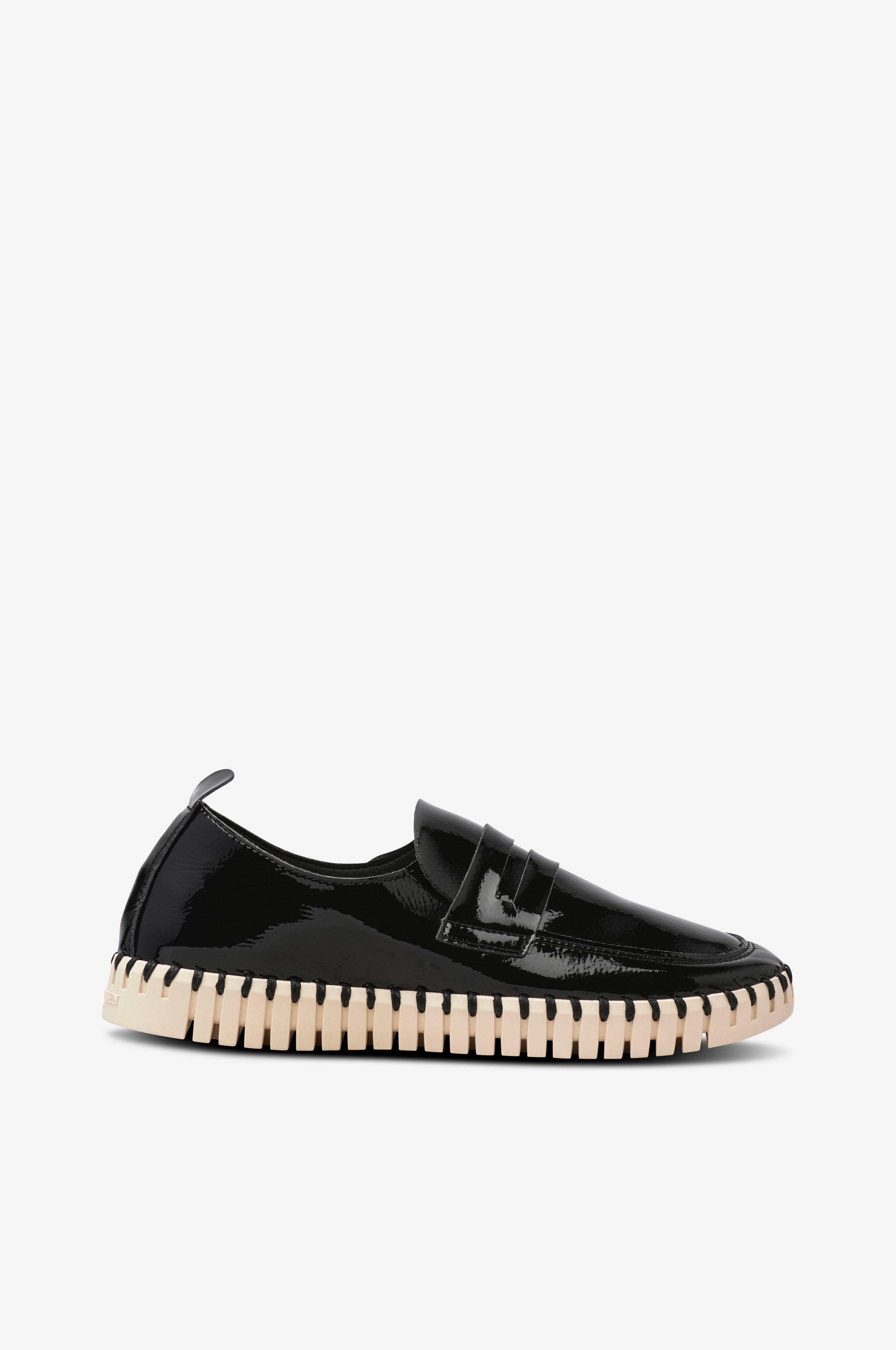 • Malli kiiltotekonahkasta• Vetoliuska takaosa• Sisäpohja nahasta• Kuvioitu ulkopohja