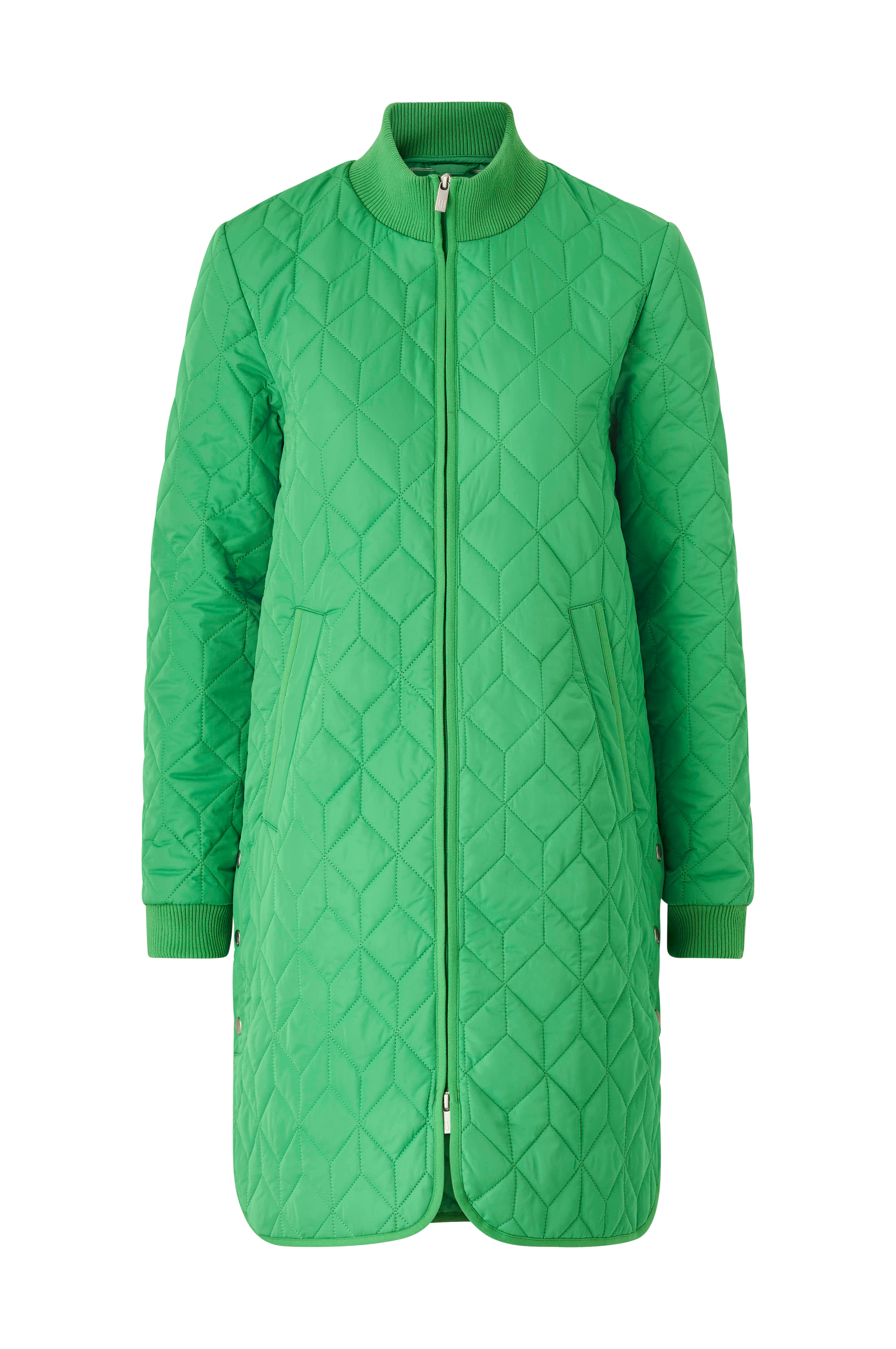 Ilse Jacobsen 10 Art06 Padded Quilt Coat Jacket -takki. Hieman A-linjainen malli, ohut toppaus ja tikattu kuvio. Joustinneuloskaulus ja kaksisuuntainen vetoketju. Kaksi etutaskua, joissa piilopainonappi. Korkeat sivuhalkiot, jotka voidaan sulkea painonapeilla. Resori hihansuissa. Hieman pidempi takaa. Pituus takaa n. 98 cm koossa 36.
