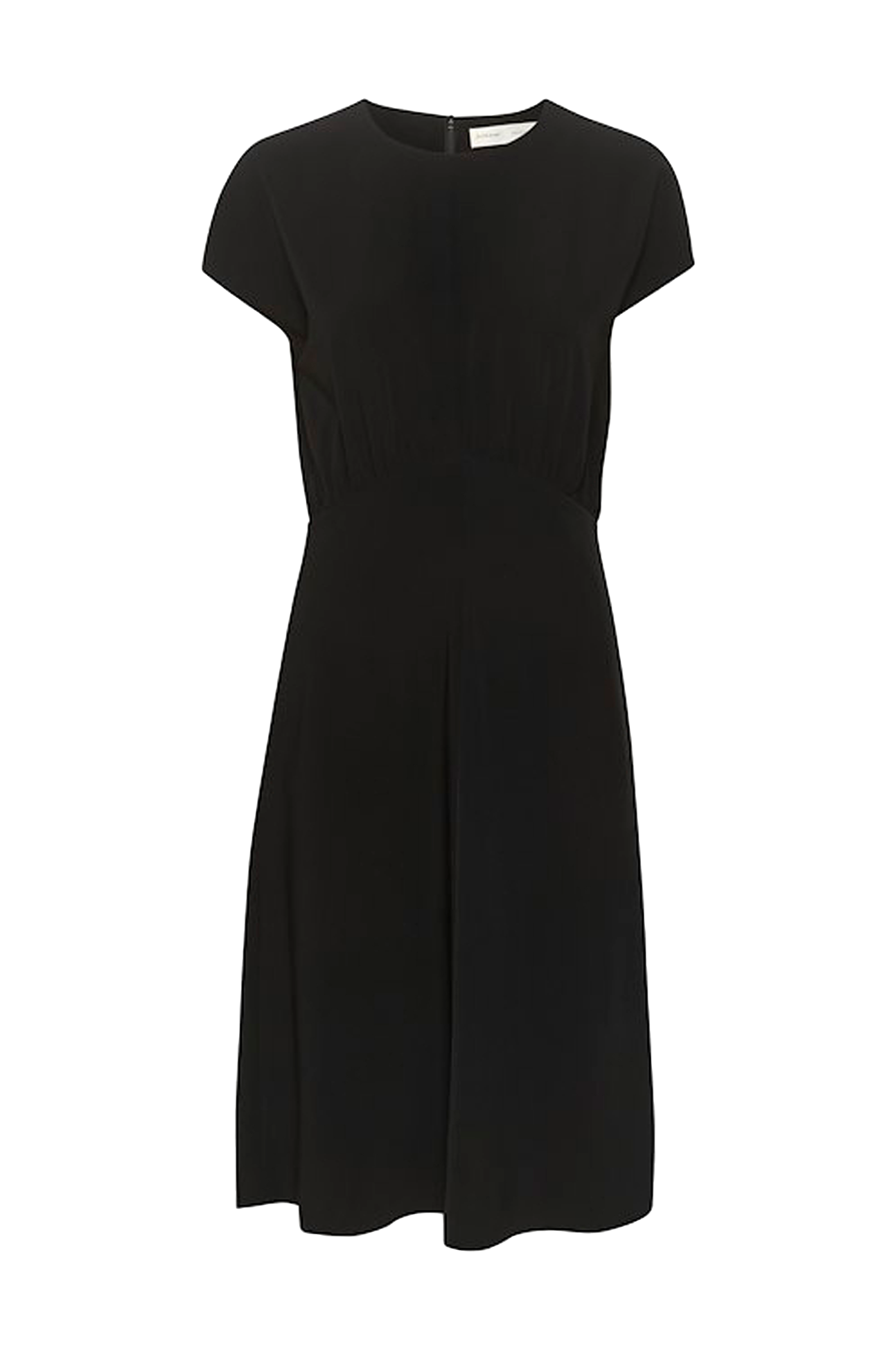 • Tyylikäs, levenevä malli• Lyhyet hihat• Poimutettu vyötärö• Kätketty vetoketju selässä• Pituus: 109 cm koossa 36