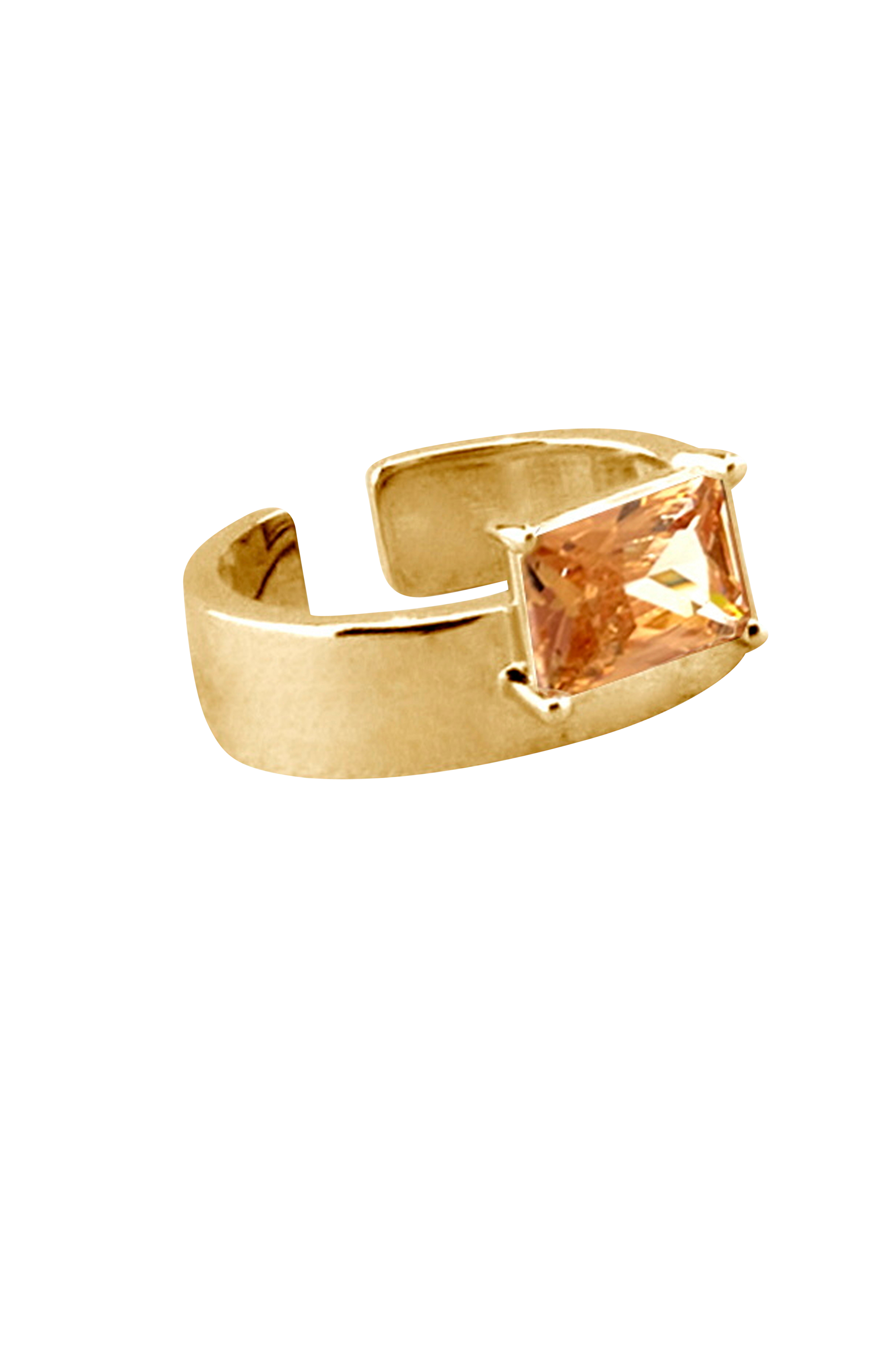 Klassinen sormus, jossa nelikulmainen kristalli. 18 karaatin kullalla päällystettyä kestävää messinkiä. Ei sisällä nikkeliä, lyijyä eivätkä kadmiumia. Toimitetaan eksklusiivisessa IOAKU-korulaatikossa. Suunnittelija Fanny Ek.