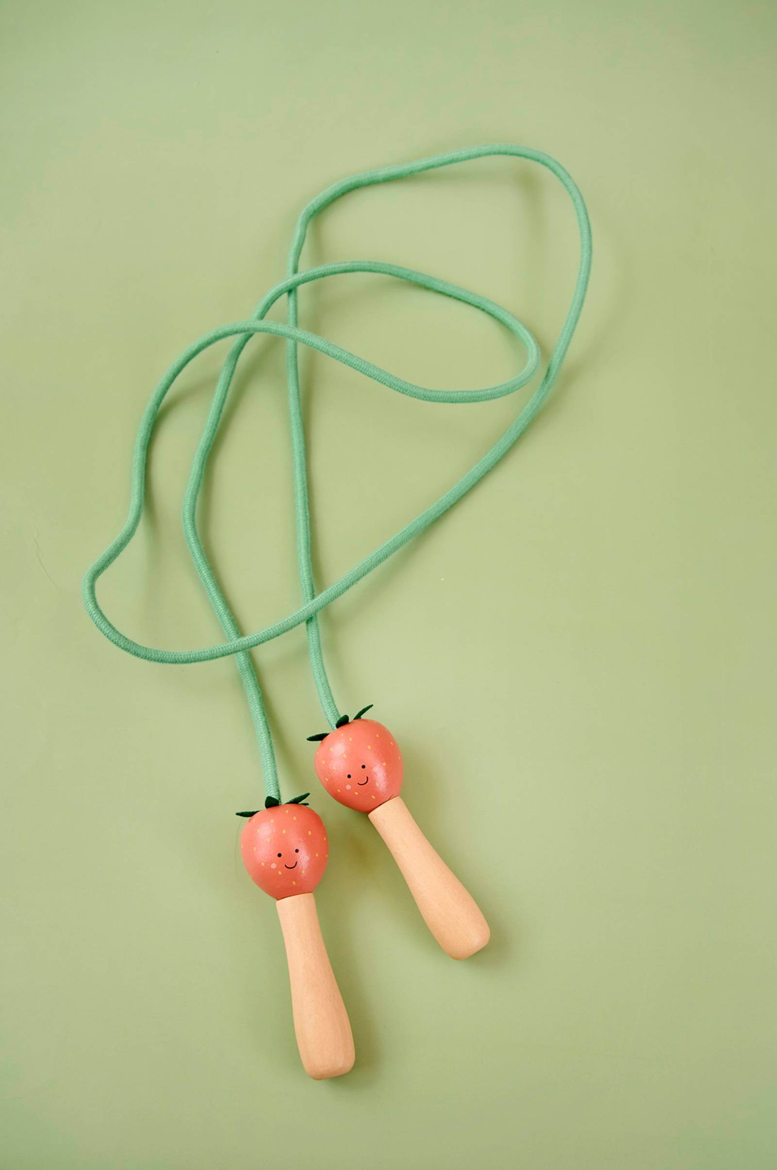 Tervehdi jabadabadon uutta hyppynarua, jossa on mansikan muotoiset kahvat! Klassinen lelu, joka ei koskaan mene pois muodista. Hyppää yksin tai yhdessä - yhtä hauskaa on kummallakin tavalla! Hyppynarussa on puiset kahvat, joiden päälle on maalattu mansikoita, ja köysi on sävytetty hillityn vihreäksi, mikä antaa sille pehmeän ja leikkisän ilmeen.