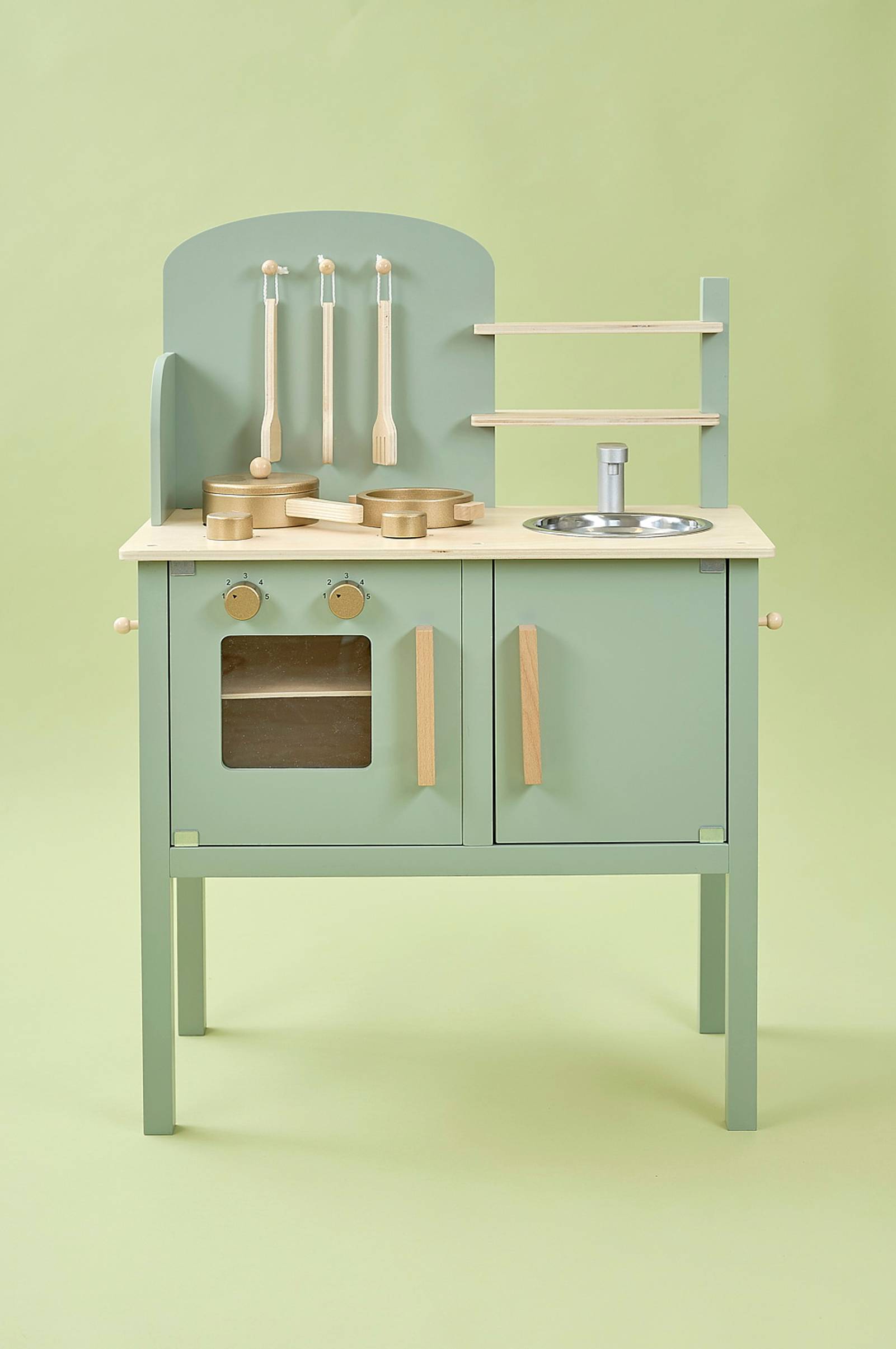Ihana lasten keittiö kaikille ruokaa rakastaville lapsille. Tämän ihanan vihreällä värillä varustetun kivan lelukeittiön avulla sinusta tulee nopeasti todellinen mestarikokki. Keittiössä on paljon hauskoja yksityiskohtia, kuten tiskiallas, liesi, uuni sekä kattila, paistinpannu ja kolme keittiövälinettä. Anna mielikuvituksesi laukata ja luo upeita ruokia koko perheelle. Lieden takana on liitutaulu, johon voit kirjoittaa, mitä illalliseksi on tarjolla. Keittiössä on liesi, uuni, pesuallas, säilytyskaapit ja kaksi säilytyshyllyä, joissa on runsaasti tilaa kaikille keittiötarvikkeille. Ovet voi avata, ja liedellä on 2 keittolevyä, joihin liittyy ruuvattavia painikkeita, jotta voit säätää lämpöä. Kun olet valmis keittiössä, voit pestä astiat tiskialtaassa. Seinällä on koukkuja keittiövälineiden ripustamista varten, ja mukana on kaksi mukavaa kattilaa. Hyvää ruokahalua!