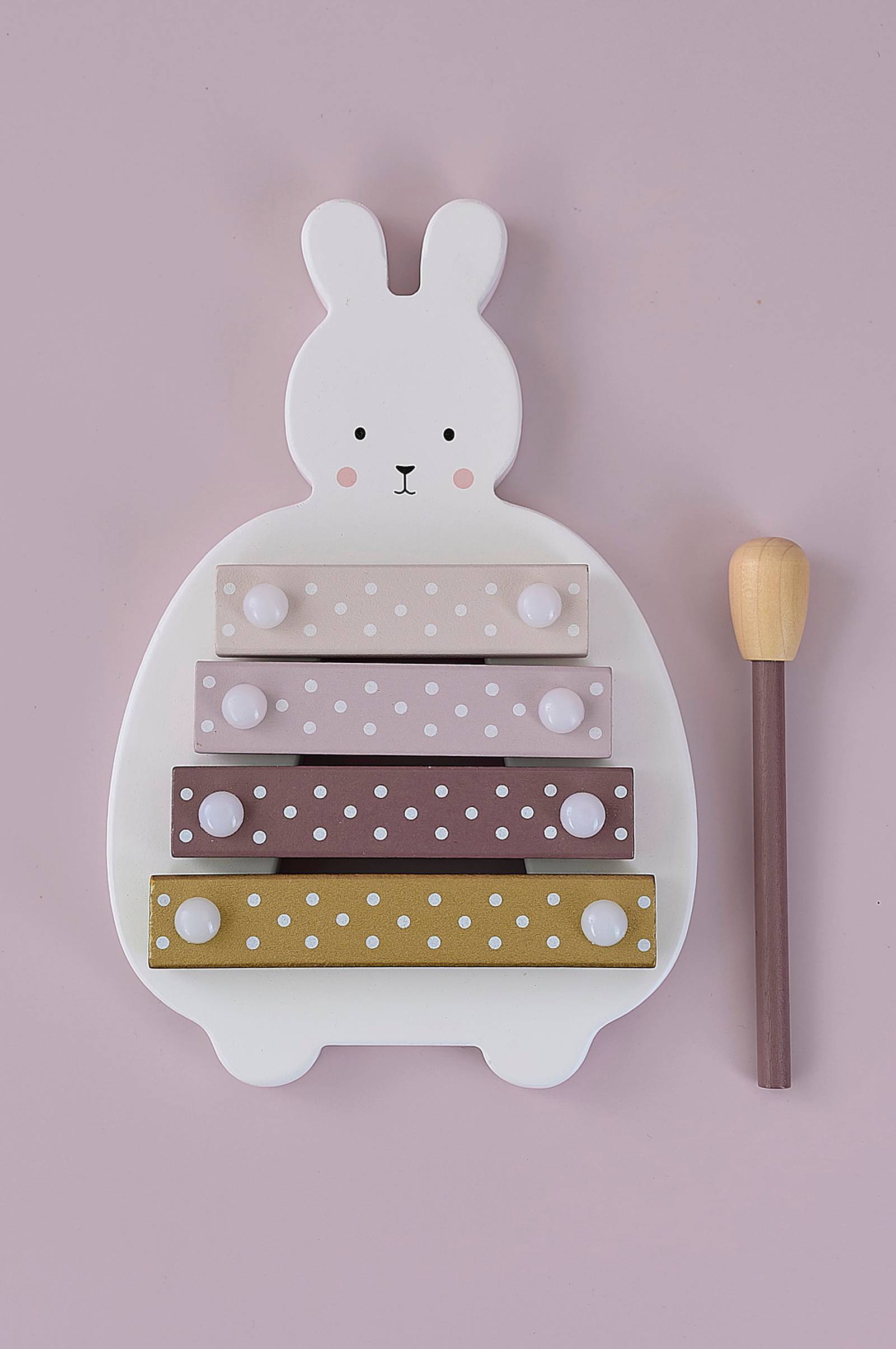 Soita ja luo ääniä klassisella puisella ksylofonilla. Tämä hauska soitin on ehdoton valinta pienelle lapselle, joka on kiinnostunut musiikista tai haluaa vain kokeilla ääniä. Ksylofoni on hauska soitin, joka sopii pienimmillekin lapsille. Herätä lapsesi musiikillinen kiinnostus. Ksylofonissa on 4 eriväristä äänilevyä ja seuratikku. Ksylofoni on valmistettu puusta, joka tuottaa pehmeämmän äänen kuin klassinen metalli. Ksylofoni on myös söpön pupun muotoinen, mikä lisää iloa.