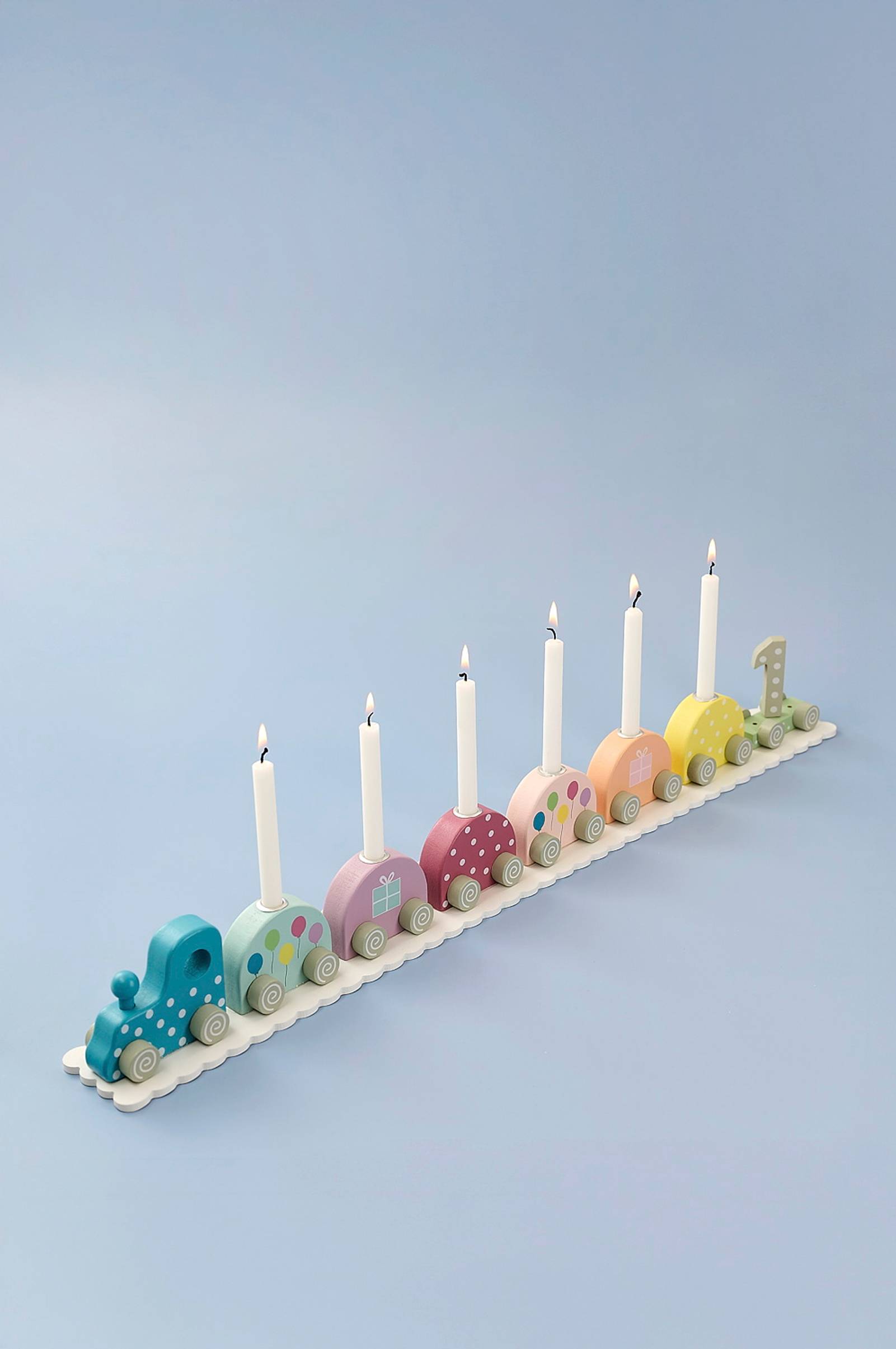 Syntymäpäiväjuna, jossa on veturi ja 7 vaunua, kaikki koristeltu yksilöllisesti. Sopii erinomaisesti juhlapöydän juhlalliseksi yksityiskohdaksi ja on taatusti onnistunut lahja. Viimeiseen vaunuun voidaan kiinnittää numero väliltä 0-9. Numerot sisältyvät toimitukseen. Tee tästä junasta uusi perinne jokaiseen juhlaan tai juhlaan.