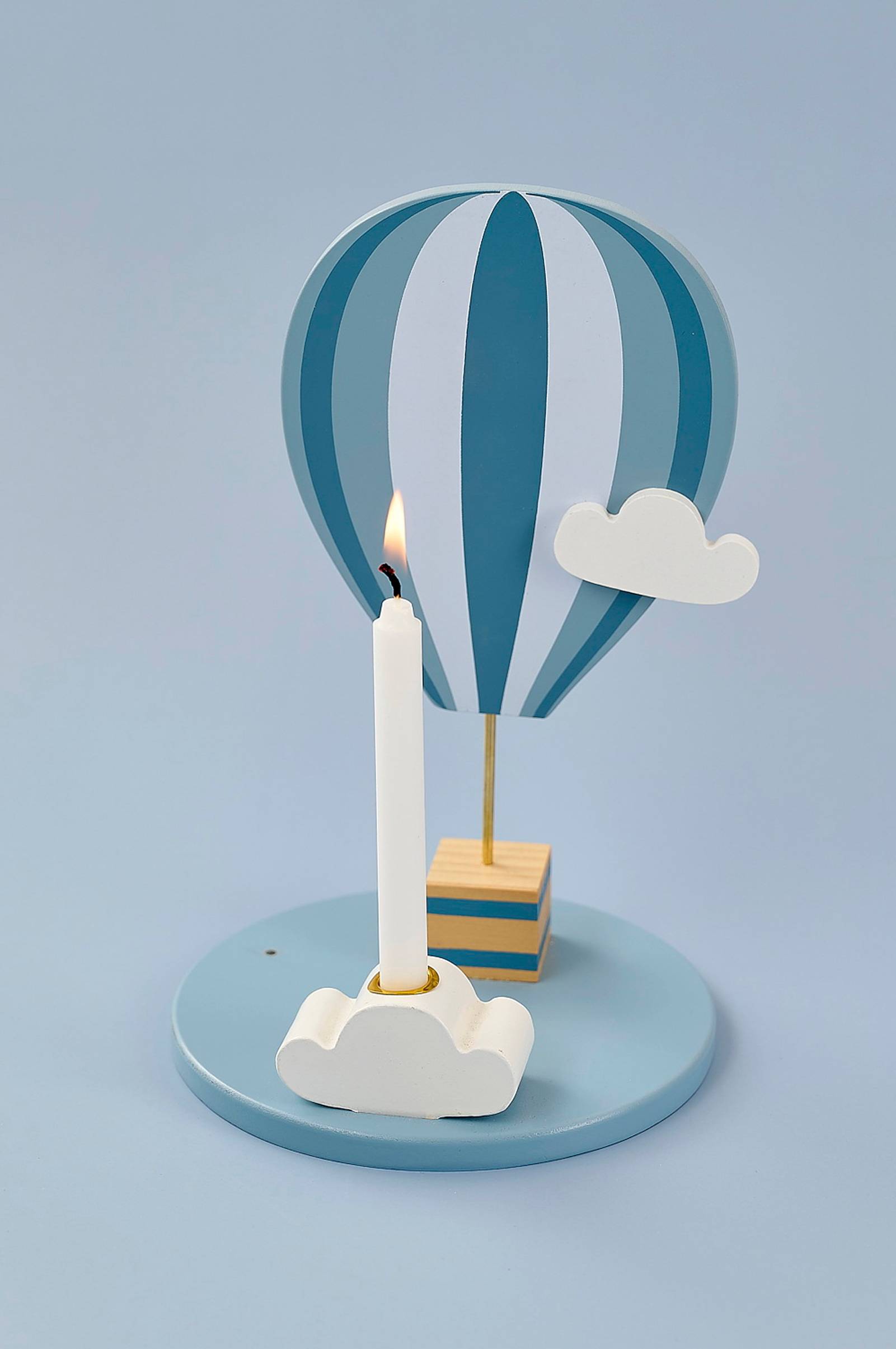 Hip-hip-hooray! Anna jabadabadon sinisen kuumailmapallon muotoisen kynttilänjalan koristella pöytää tai aamiaistarjotinta joka syntymäpäiväaamu. Anna sen tulla rakkaaksi perinteeksi kaikissa syntymäpäiväjuhlissasi. Kynttilänjalka on kauniisti pakattu eksklusiiviseen lahjapakkaukseen, joten se on erinomainen ja arvostettu lahja. Suosittelemme täydentämään sitä erikseen myytävillä numeropalloilla 0-9, jotka voidaan kiinnittää kynttilänjalkaan. Kynttilät myydään erikseen.