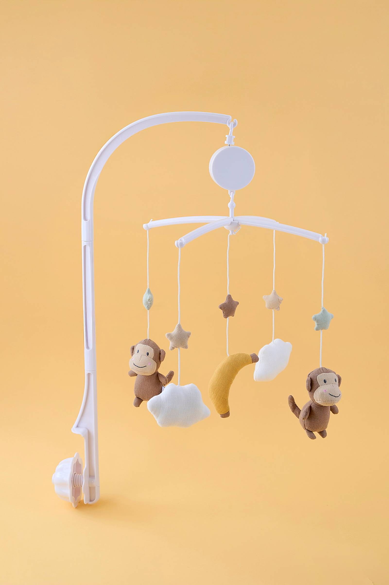Luo rauhoittava ja viihtyisä ilmapiiri pinnasängyn viereen tällä musiikkimobiililla, jossa on söpöjä apinoita ja muita pehmeitä hahmoja. Mobiili soittaa rauhoittavaa melodiaa, joka auttaa vauvaa rauhoittumaan nukkumaan mennessä. Riippuvat apinat, banaani ja pilvet on valmistettu pehmeistä materiaaleista, jotka lisäävät leikkisää mutta rauhoittavaa vaikutusta. Täydellinen stimuloimaan vauvan aisteja ja luomaan turvallisen ja harmonisen nukkumisympäristön. Helppo kiinnittää pinnasänkyyn ja tyylikäs yksityiskohta lastenhuoneeseen.