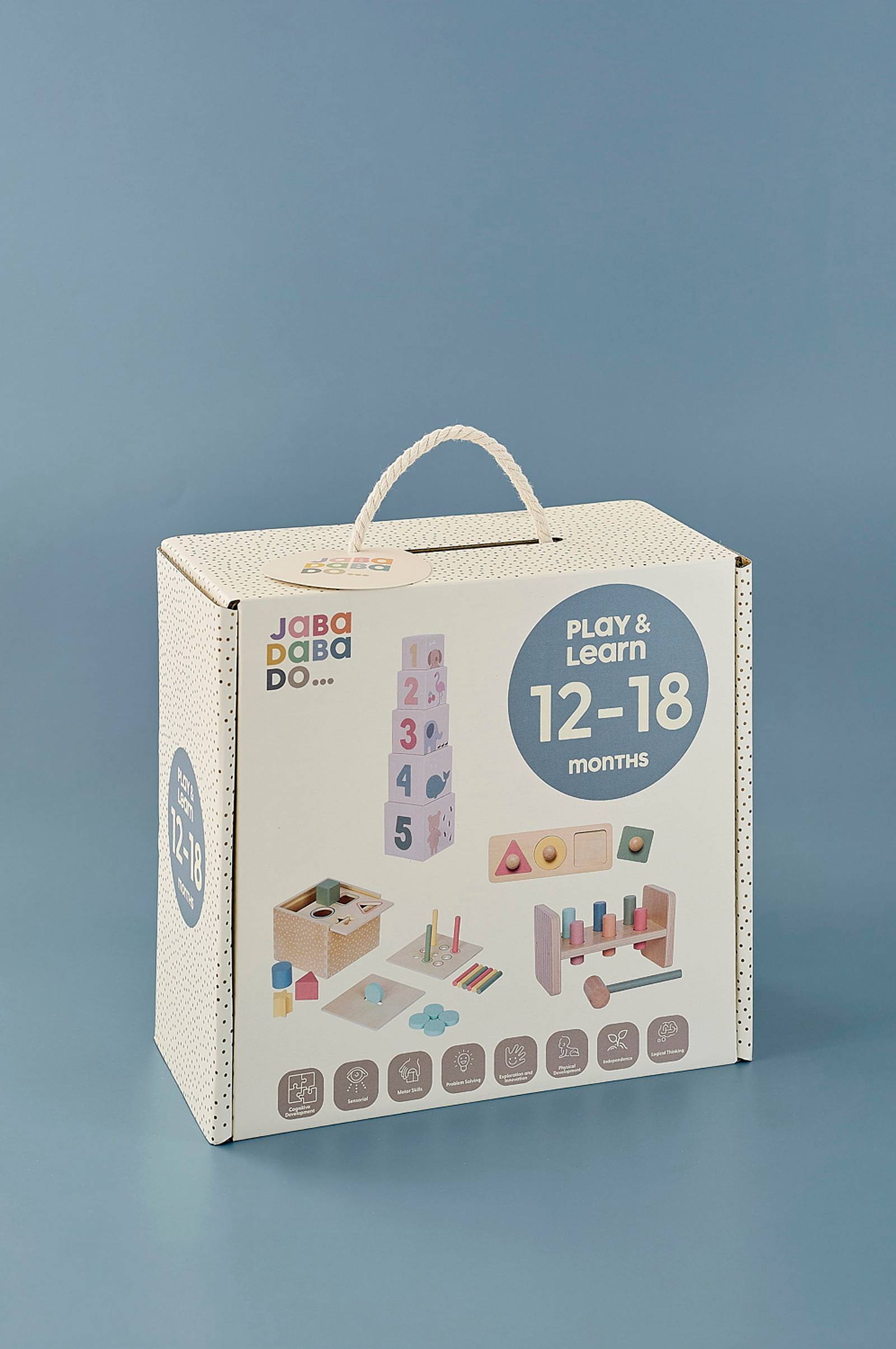 Tämä jabadabadon leikki- ja oppimislaatikko sisältää neljä huolellisesti valittua lelua, jotka on suunniteltu tarjoamaan lapselle jännittävä matka leikin ja kehityksen kautta. Jokaisella lelulla on selkeä tarkoitus, jonka avulla 12-18 kuukauden ikäinen lapsi voi kehittää motorisia taitojaan ja stimuloida kognitiivisia kykyjään.