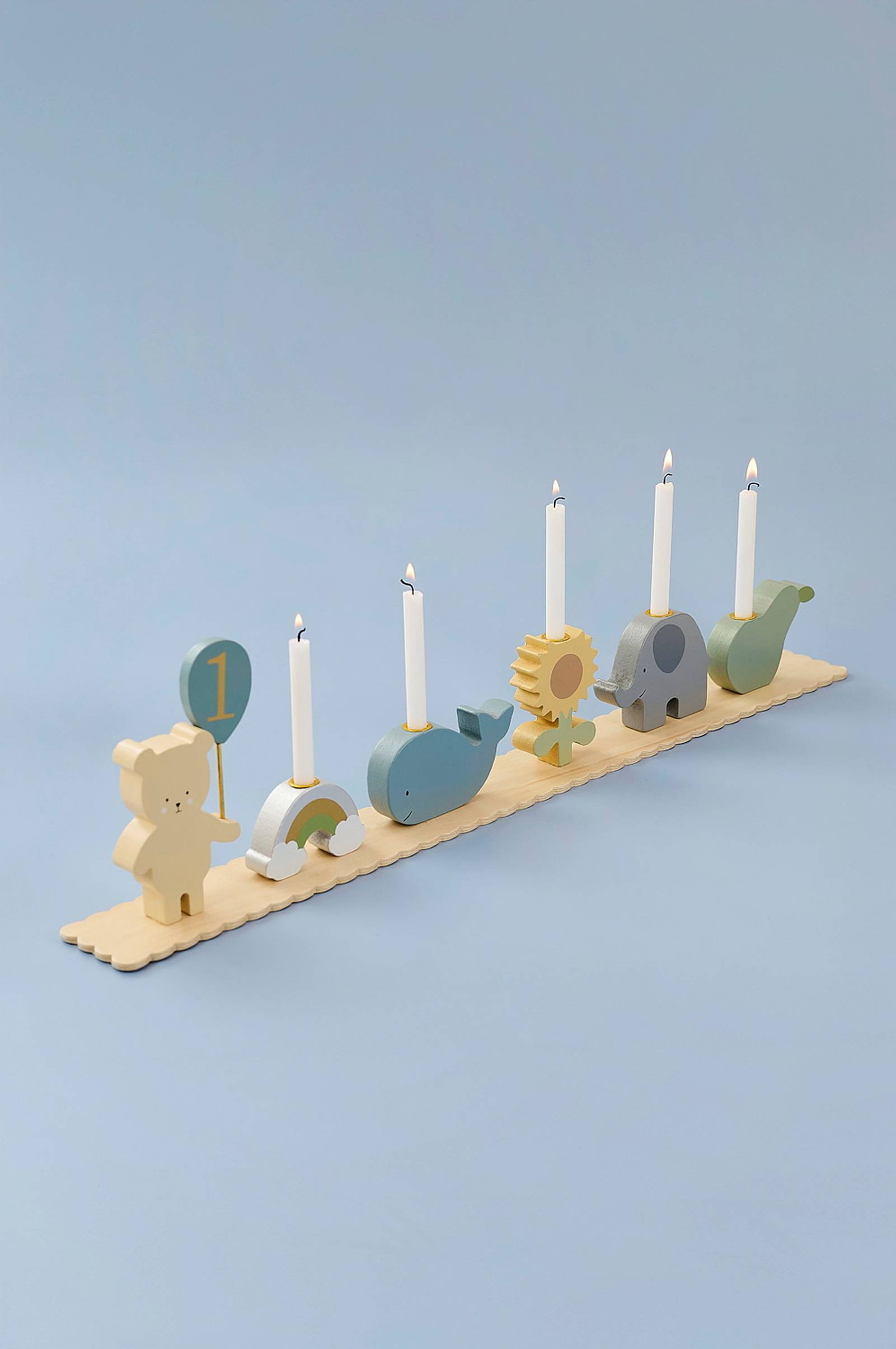 Luo ikimuistoisia syntymäpäivähetkiä näillä viehättävillä syntymäpäiväjunilla! Jokainen juna on täynnä söpöjä hahmoja - kaikki valmiina juhlimaan pikkuista. Pehmeiden, leikkisien värien ja kauniiden puisten yksityiskohtien ansiosta tämä syntymäpäiväjuna ei ole pelkkä koriste vaan myös rakastettu perinne, jota voidaan käyttää vuodesta toiseen. Anna syntymäpäiväjunan tulla osaksi perheen perinteitä ja luo taianomaisia hetkiä, kun hahmot asetellaan yksi kerrallaan ennen juhlia. Nallen ja ystävien kanssa tästä syntymäpäiväjunasta tulee ihana juhlapöydän keskipiste. 1x nalle, 1x sateenkaari kynttilänpidikkeellä, 1x valas kynttilänpidikkeellä, 1x auringonkukka kynttilänpidikkeellä, 1x norsu kynttilänpidikkeellä, 1x päärynä kynttilänpidikkeellä.