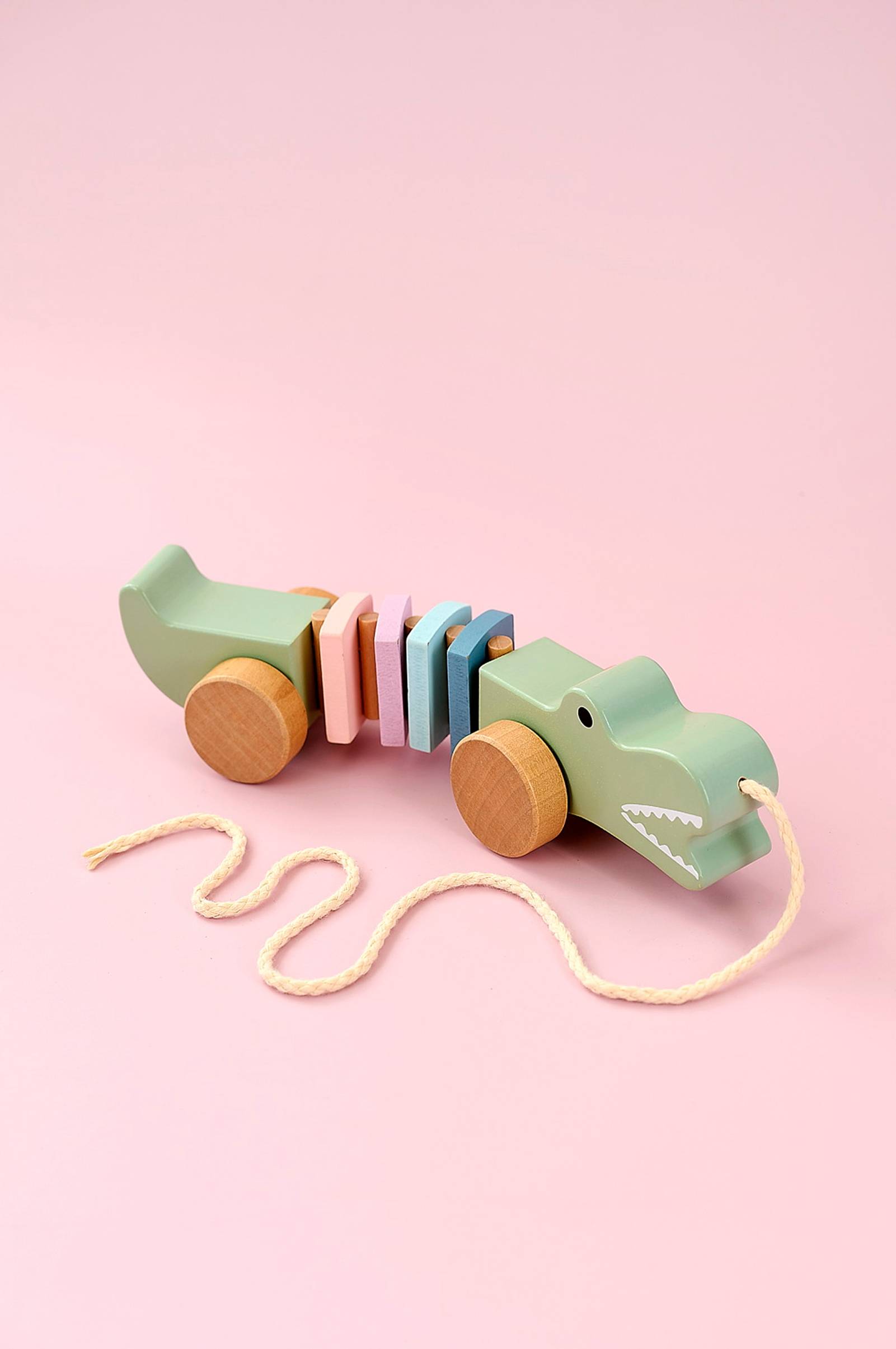 Klassinen puinen, siistin krokotiilin muotoinen vetolelu. Lapset rakastavat kuljeskella ympäri taloa uuden pienen lemmikkinsä kanssa. Tämä hauska krokotiili kulkee iloisesti lapsesi mukana monissa jännittävissä seikkailuissa. Siinä on tukevat puiset pyörät, joiden ansiosta sitä on helppo vetää. Auttaa lapsia kehittämään tasapainoa ja silmän ja käden koordinaatiota.