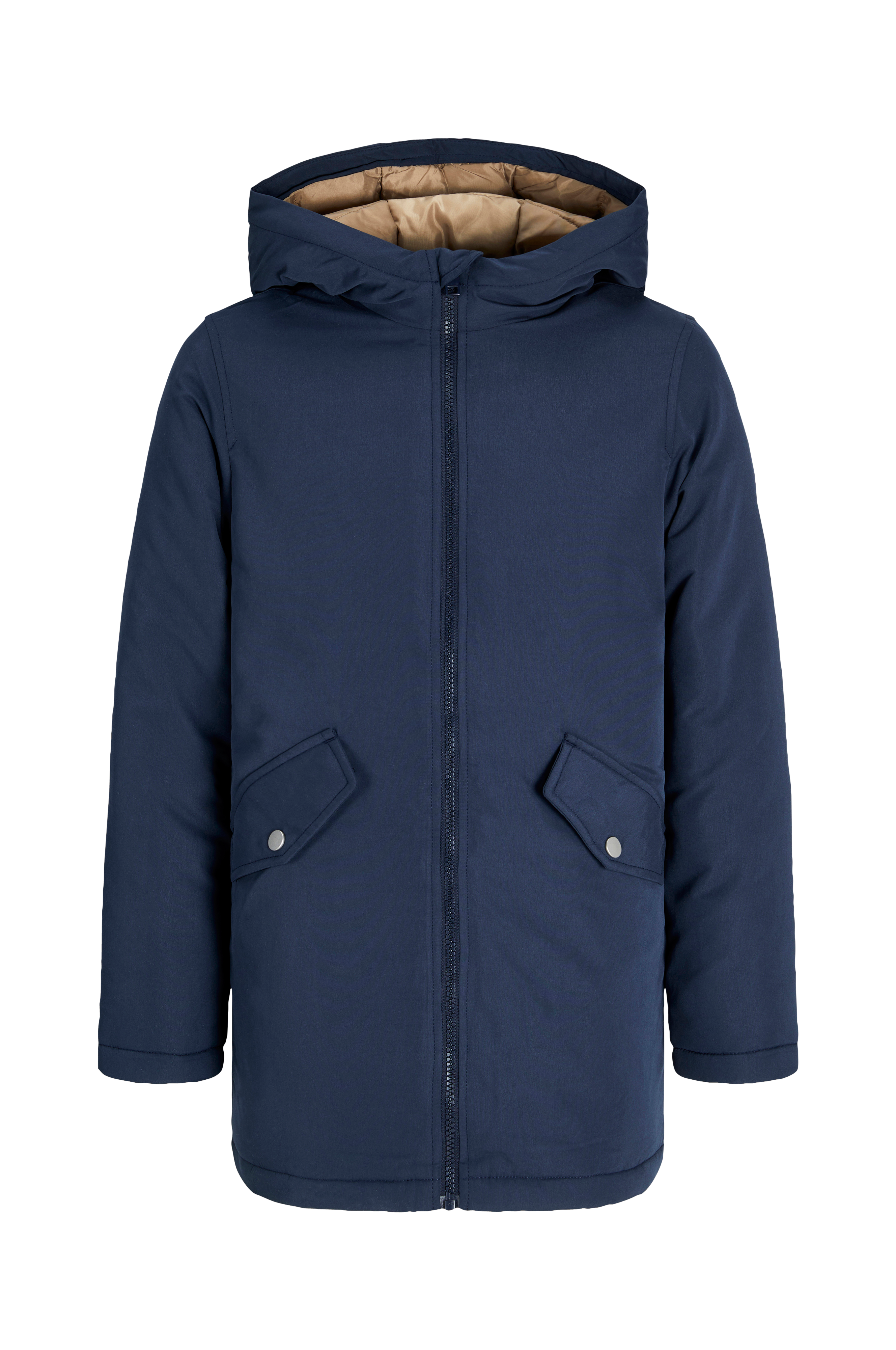 • Suora, topattu malli tikatulla vuorilla• Vetoketju edessä korkealla kauluksella ja hiertymäsuojalla leuan kohdalla• Vuorattu huppu• Taskut kannella
