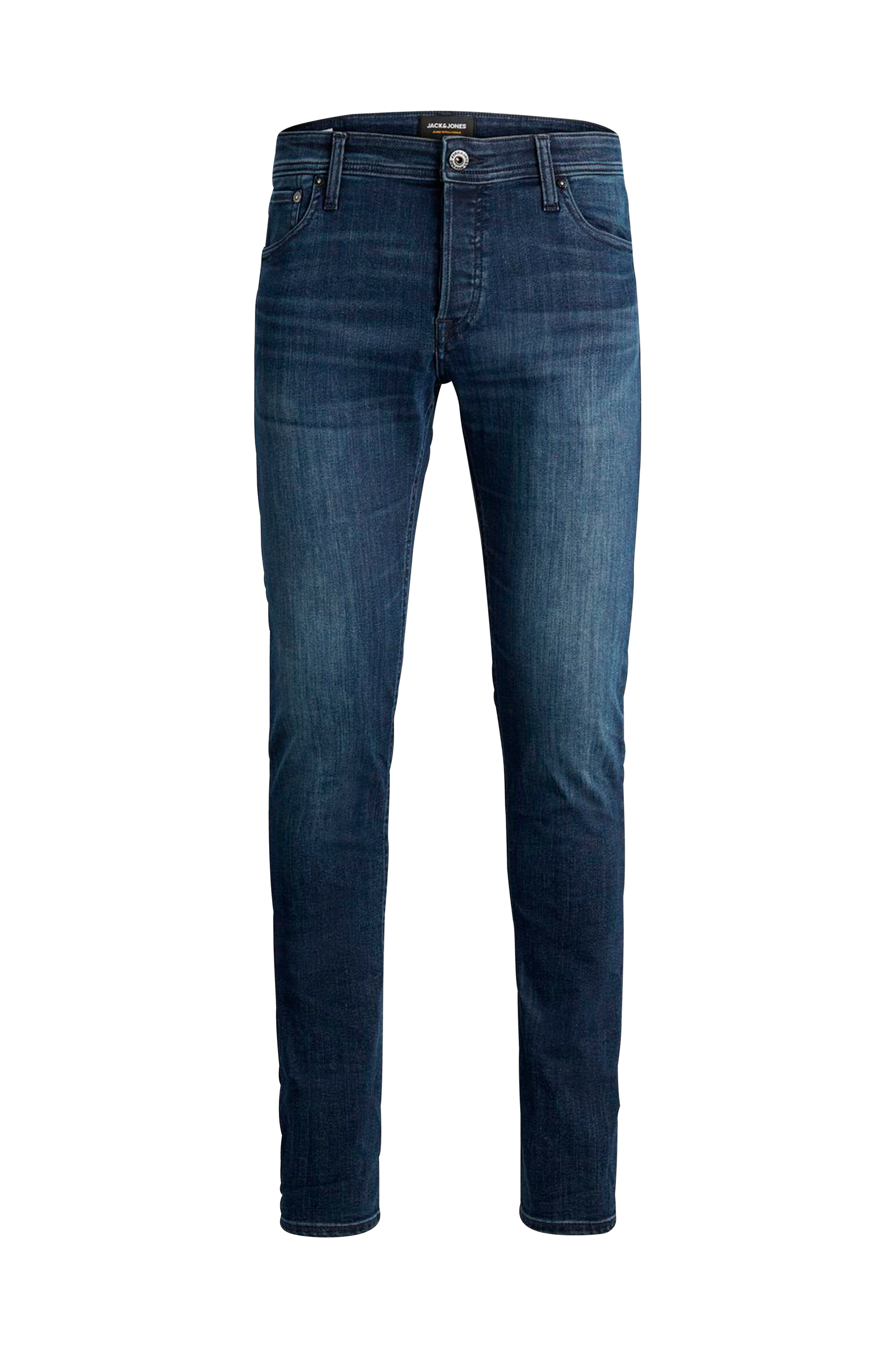 Jack & Jones jjGlenn jjOriginal Slim -farkut. Kapea malli, jossa tummat koristetikkaukset ja kevyesti kapenevat lahkeensuut. Viisi klassista farkkutaskua ja napit etuhalkiossa.
