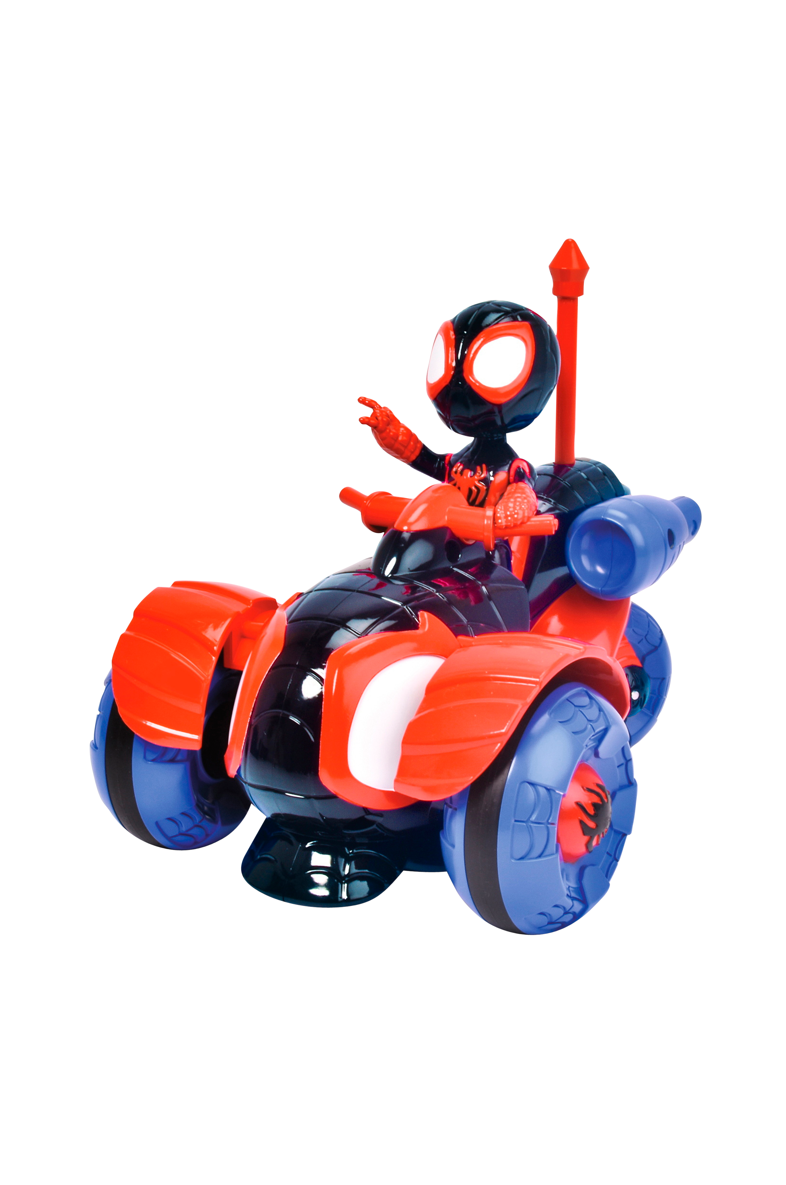 Autossa istuu Miles Morales -hahmo (hahmoa ei voi irrottaa).