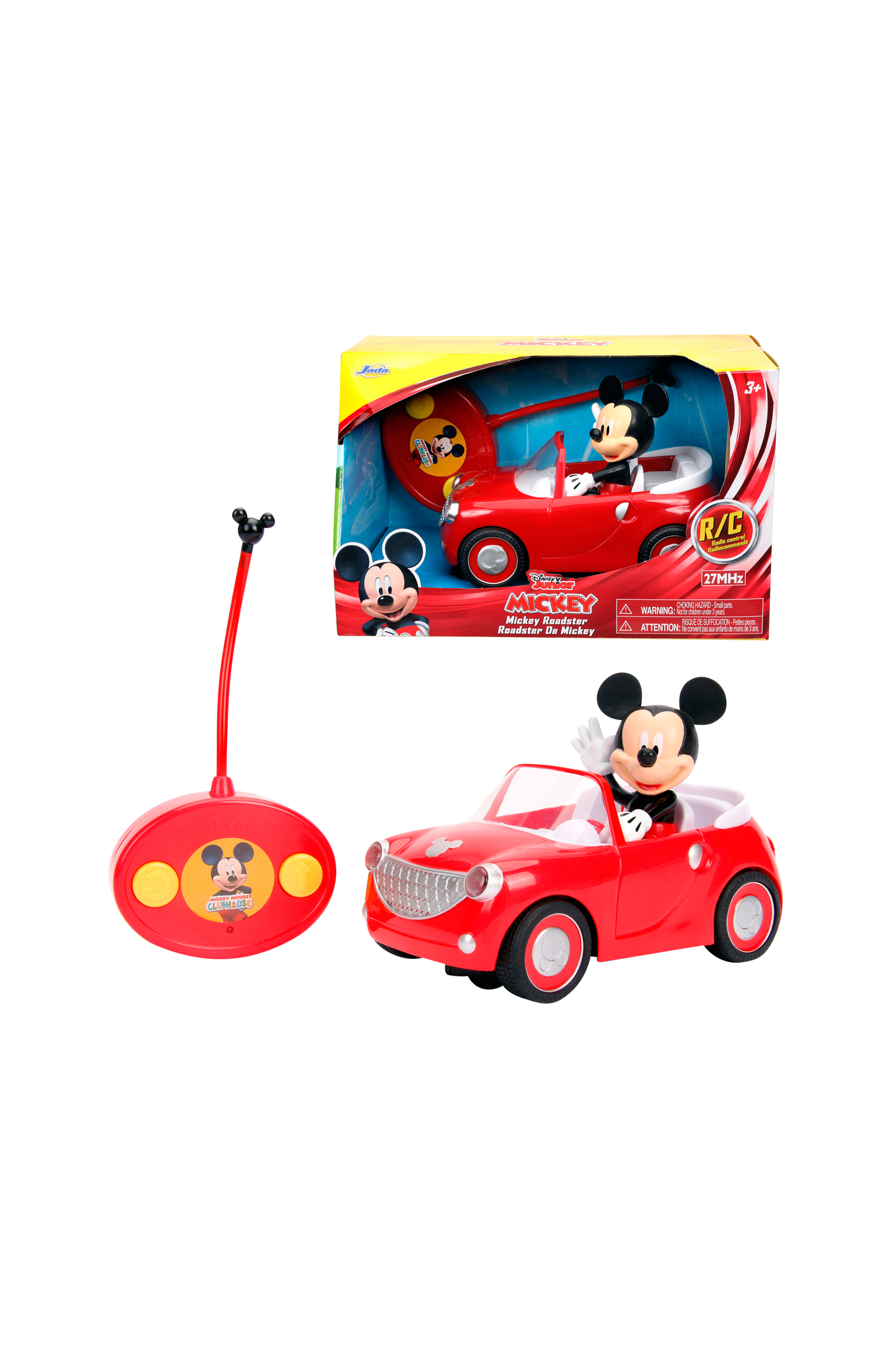Radio-ohjattava Disney Mikki Hiiri Roadster -auto. 2 kanavaa, 2,4 GHz. Auto kulkee suoraan eteenpäin ja kääntyy ympäri.