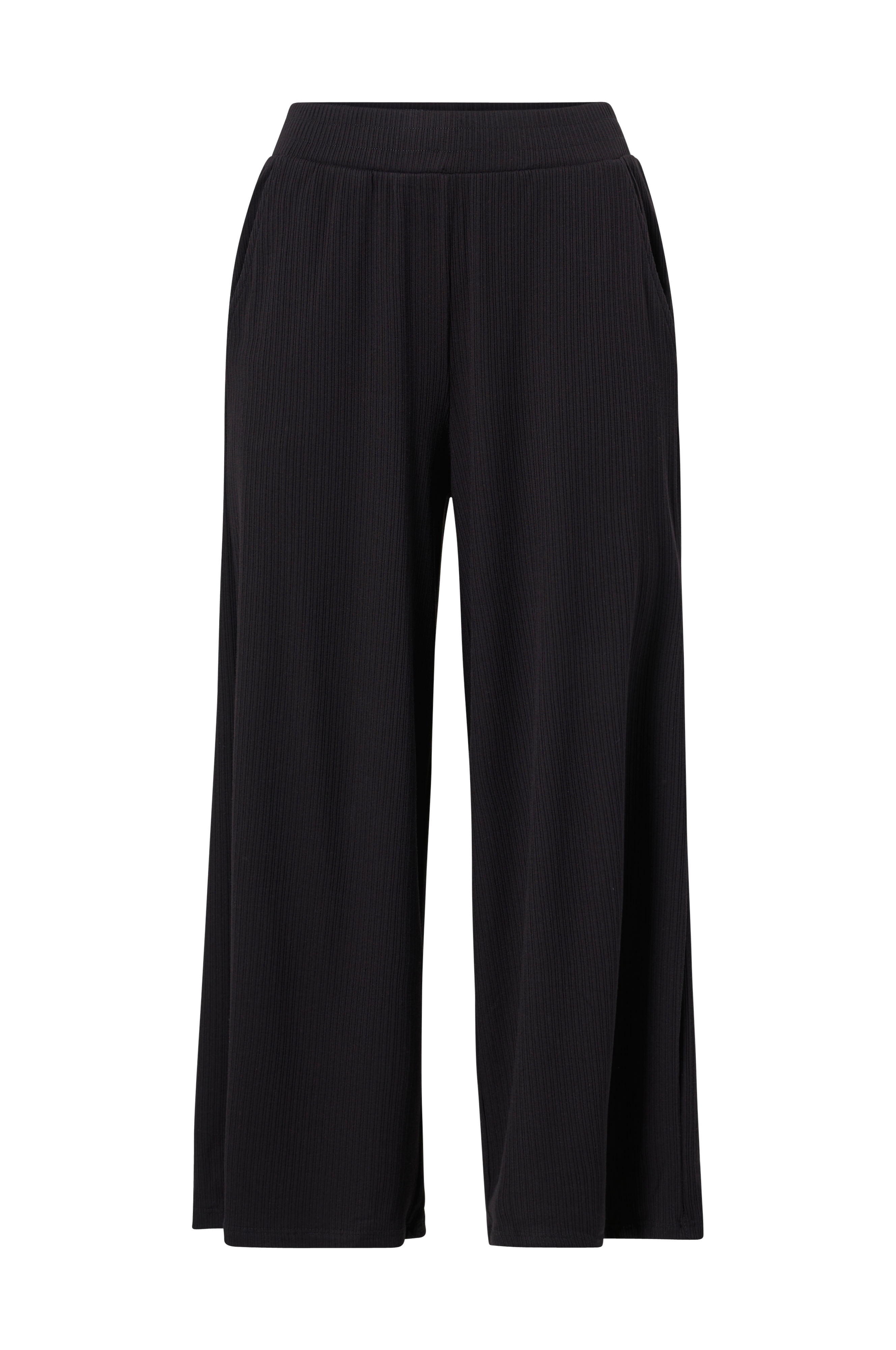 • Leveät, pohkeen puoliväliin ulottuvat housut• Joustava vyötärö• Taskut sivuilla• Valmistettu ribatusta trikoosta
