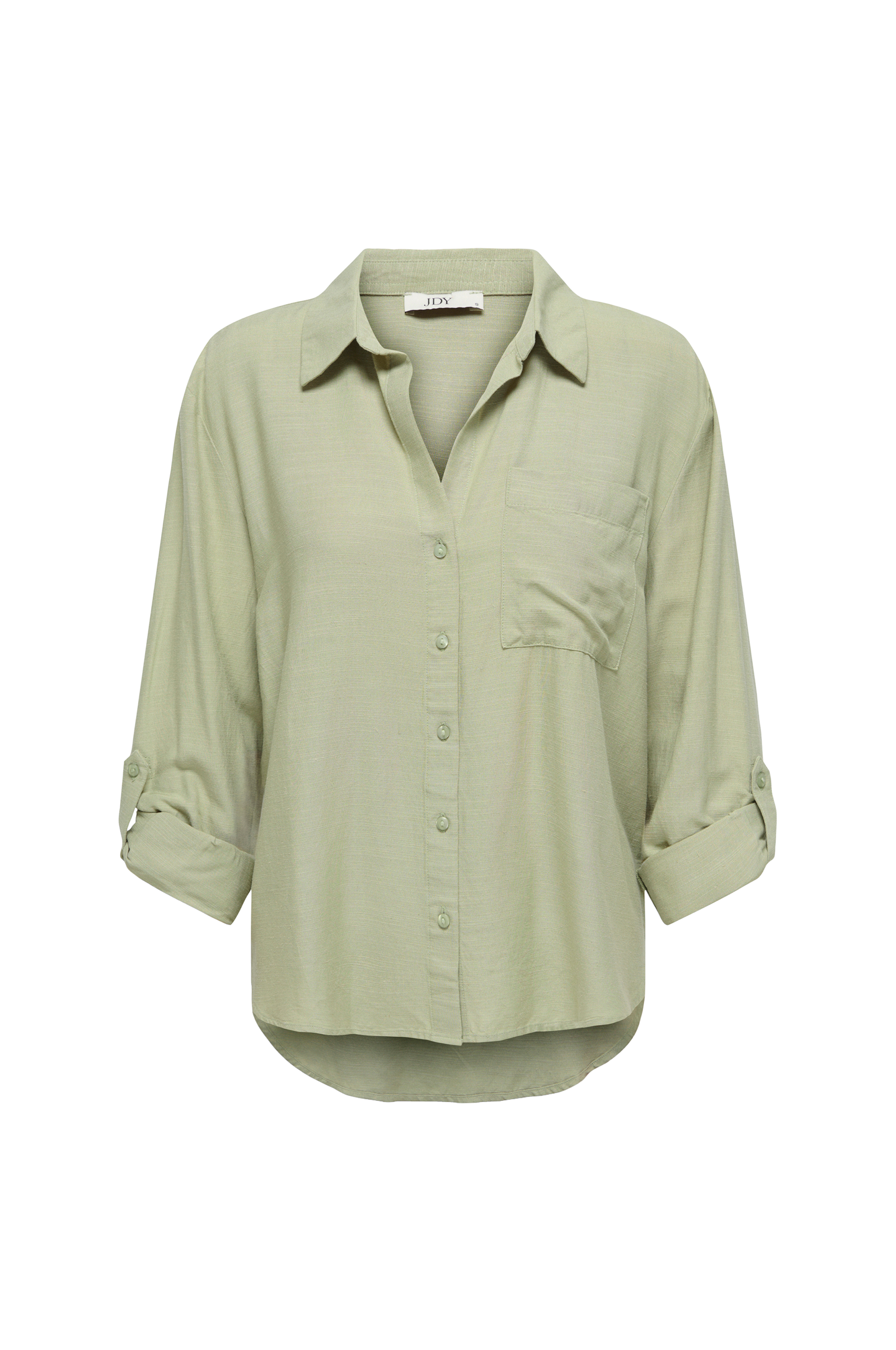 • Paita hienoisella pellavatuntumalla• V-muotoinen pääntie kauluksella• Napit edessä• Pitkät, ylös käännetyt hihat• Rintatasku• Pyöristetty helma
