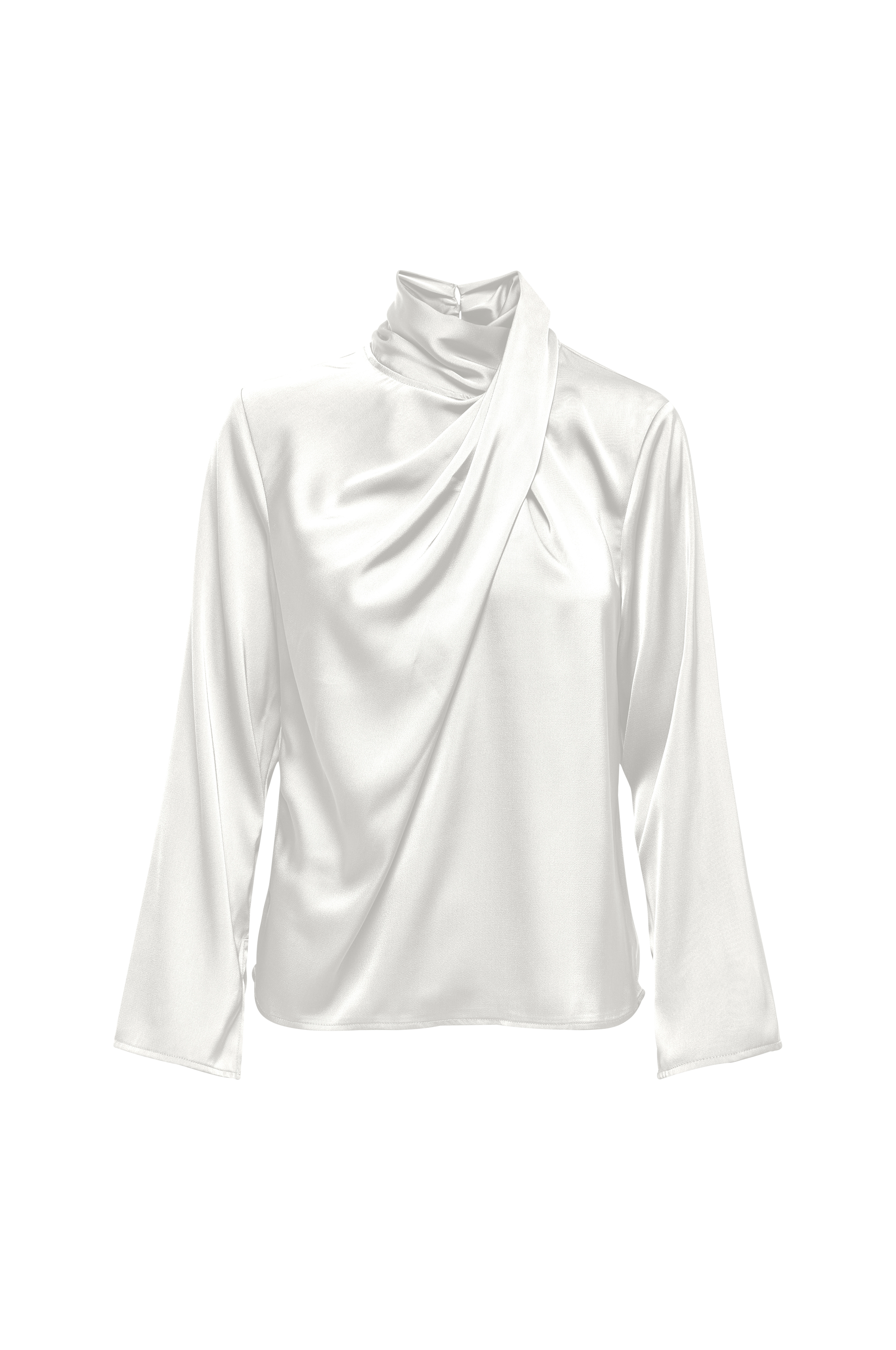 • Pusero satiinista• Korkea kaula-aukko solmudrapeerauksella• Halkio napilla niskan kohdalla