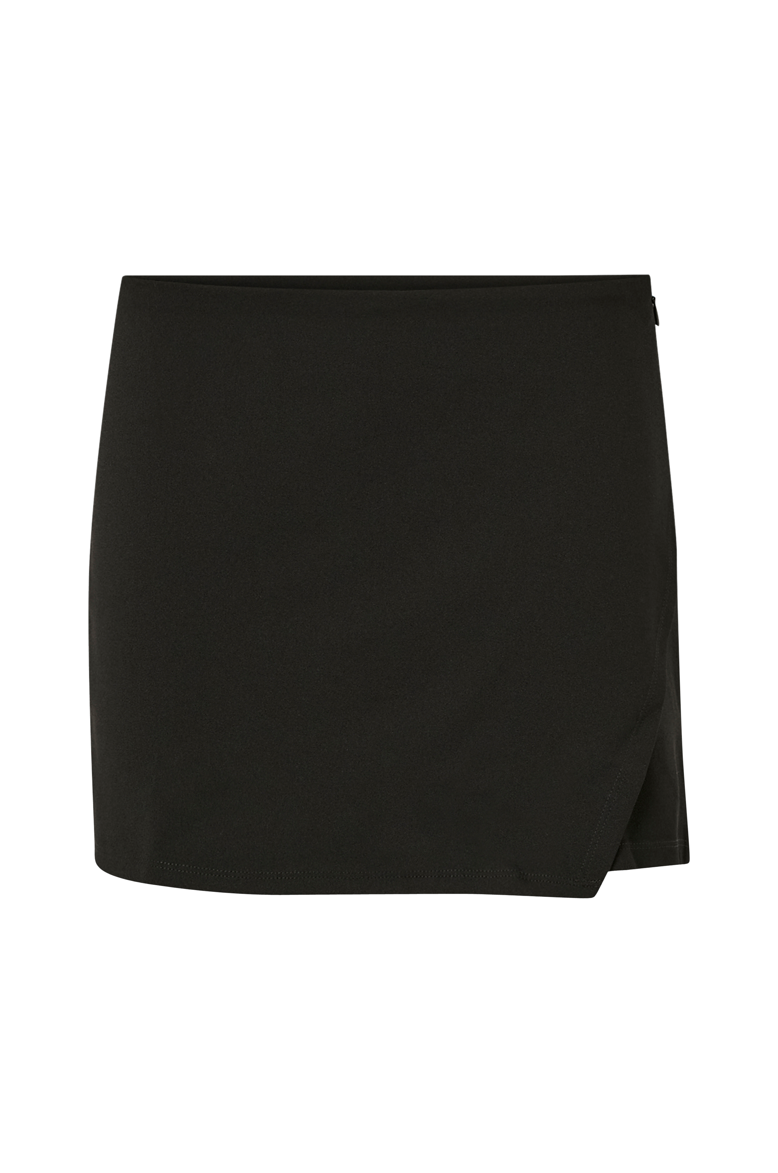 Trikooshortsit, joissa edessä ylin kerros on päälleommeltu hameeksi. Joustava vyötärö ja leveät lahkeet.