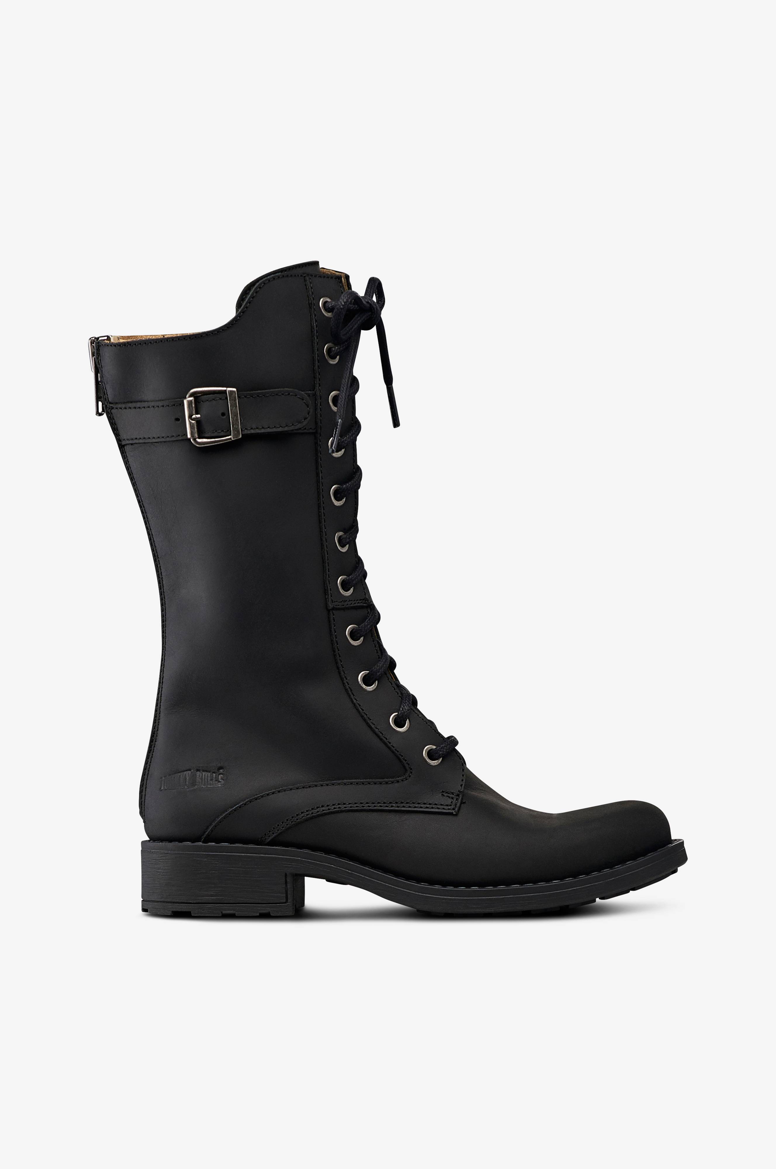 Johnny Bulls High Lace Boot -nilkkurit hienostunutta mattanahkaa. Nyöritys varressa. Pukemista ja riisumista helpottava vetoketju varressa keskellä takana. Istuvuutta voi säätää nyörityksellä. Sileä jalkaterä ja pyöristetty kärki. Koristeremmi varren ulkosivulla. Kokonaisena valettu pohja. Erittäin laadukas malli hengittävää nahkaa. Varren korkeus n. 24 cm koossa 37. Koron korkeus n. 3,5 cm.