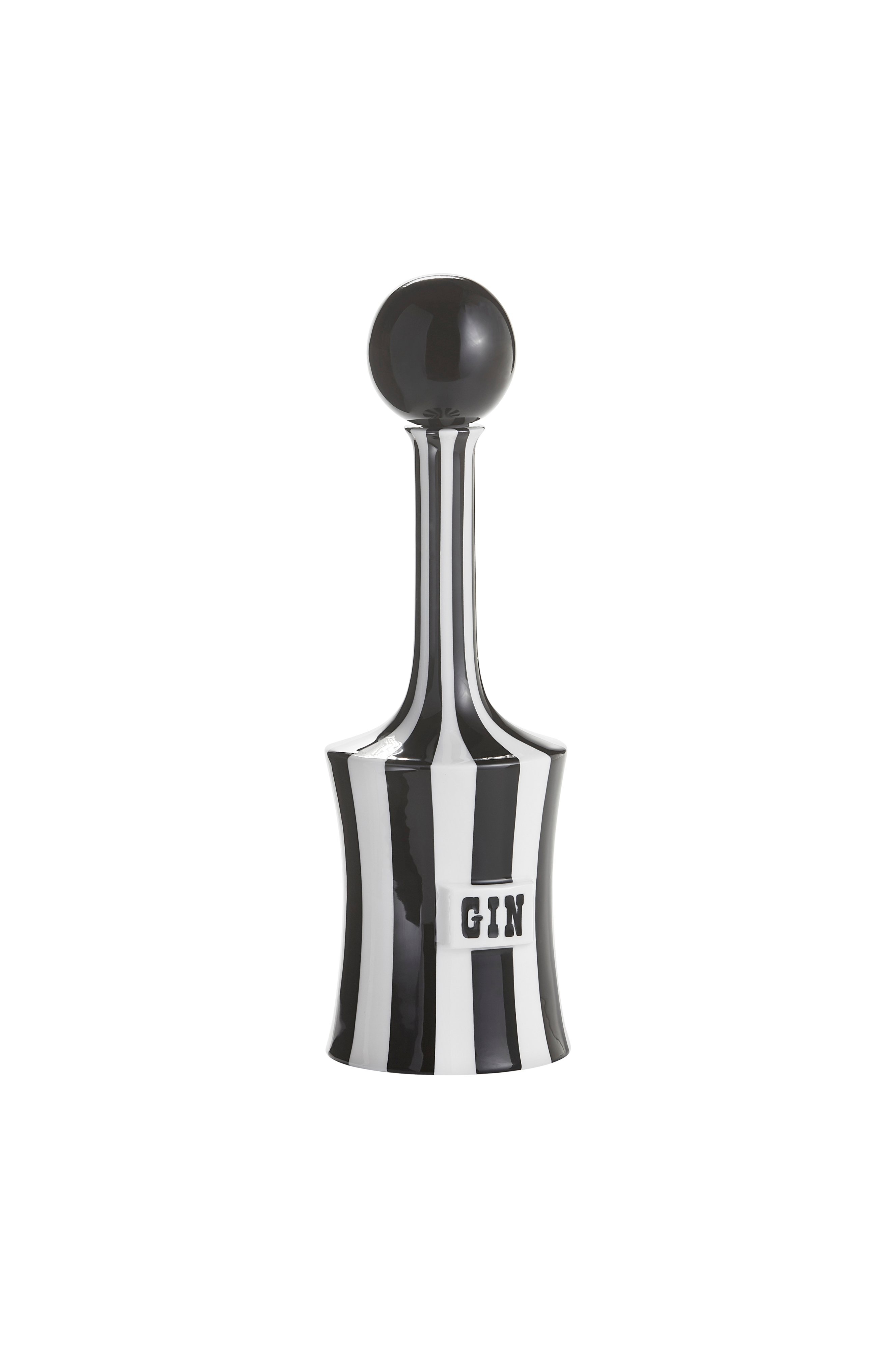 Vice-karahvi, jossa ikoninen kuvio. Sopii kauniisti myös koristeeksi. Koristeellinen karahvi käsinmaalattua posliinia, jossa graafinen mustavalkoinen kuvio. Hillitty siluetti, pitkä kaula ja iso pyöreä korkki. Sijoita useita karahveja baaritiskille tai tarjoiluvaunuun saman sarjan jääastian viereen. Voidaan täyttää useimpien kaatonokkien avulla. Korkeus 30,5 cm, halkaisija 10 cm.