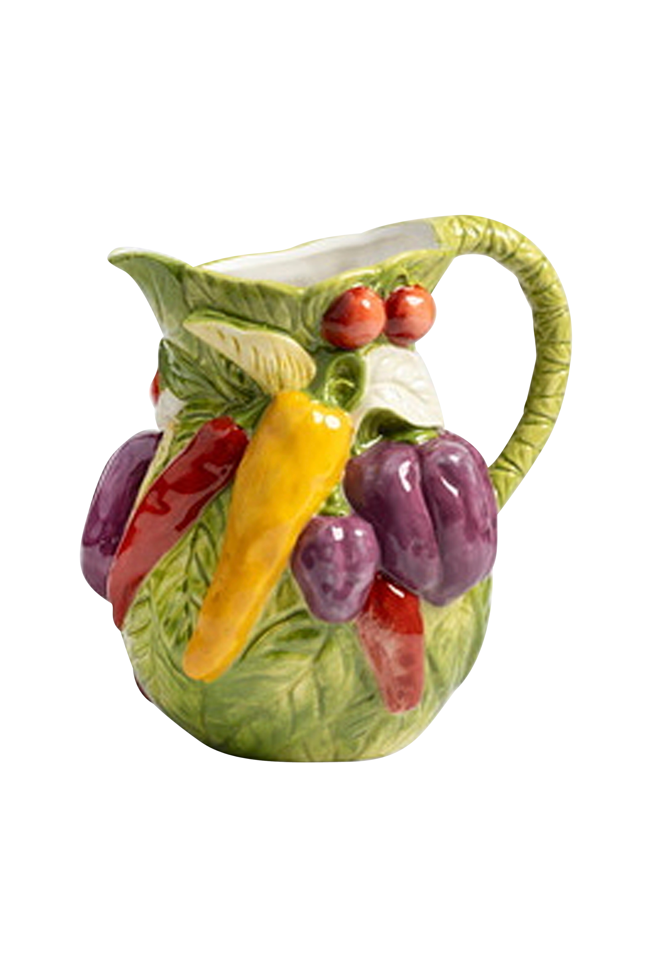 Tee rohkea kannanotto tällä suurella dolomiittikarahvilla, jota koristaa vilkas vihanneskuvio, jossa on paprikaa, paprikaa ja muita värikkäitä vihanneksia. Se sopii täydellisesti veden, viinin tai jopa juomien tarjoiluun, ja se on yhtä käytännöllinen kuin silmiä hivelevä. Olipa kyseessä ruokapöytä tai keittiön tiski, tämä karahvi tuo eloisan lisän mihin tahansa ympäristöön. Yhdistä se legume-malliston vastaavien kappaleiden kanssa, niin saat yhtenäisen ja leikkisän kokonaisuuden.