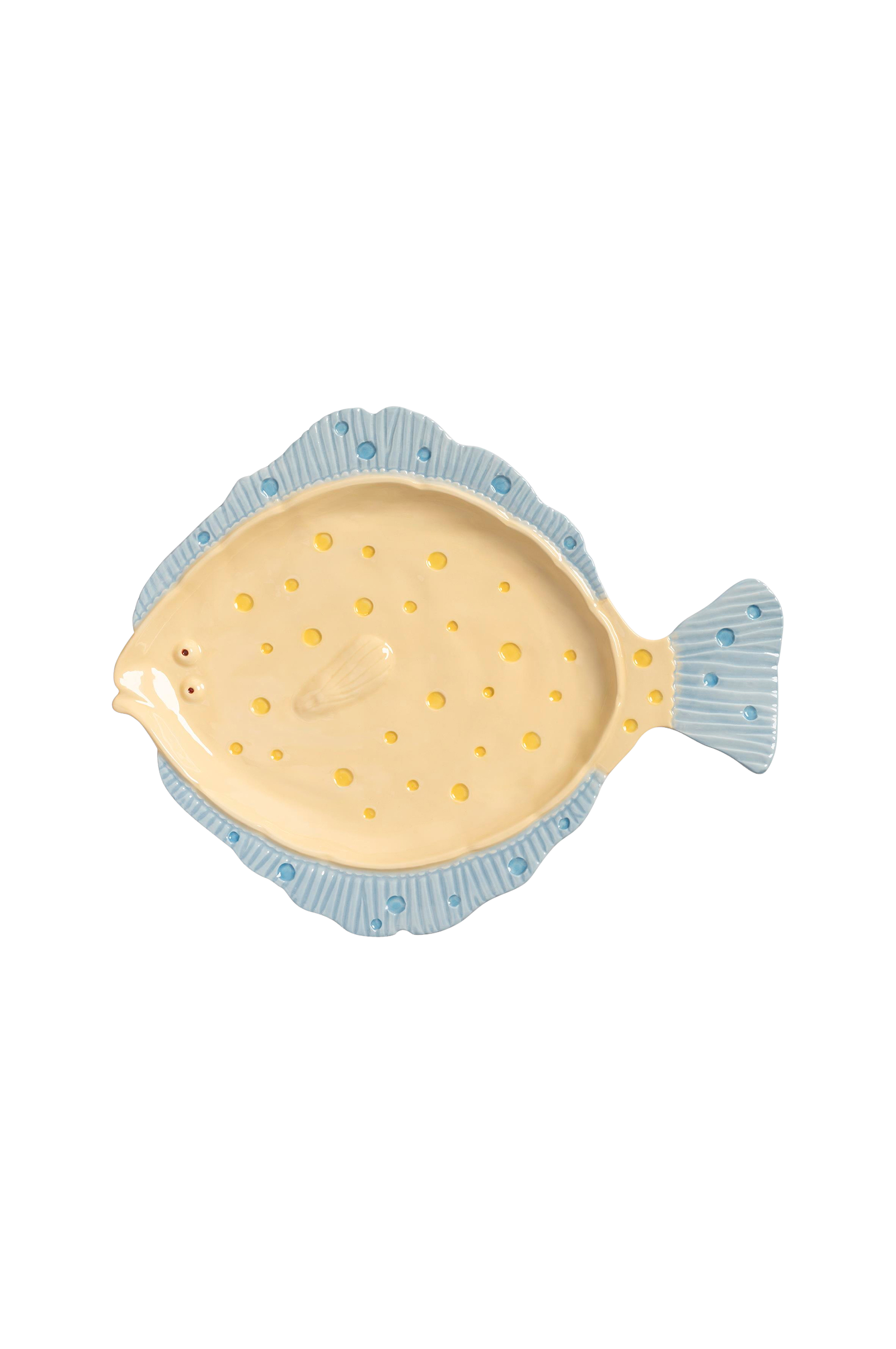 Tarjoile ruokasi raikkaalla tavalla näillä kalanmuotoisilla tarjottimilla. Jokaisessa kappaleessa on kesäisiä värejä ja hienovarainen reliefikuvio, joka tekee jokaisesta illallisesta hieman erikoisemman. Sisäinen tiimimme muotoilee käsin sekä muodot että kohokuvion, mikä antaa jokaiselle lautaselle ainutlaatuisen, käsityönä tehdyn ilmeen. Valmistettu kivitavarasta. Ihanteellinen alkupalojen ja tietenkin merenelävien tarjoiluun.