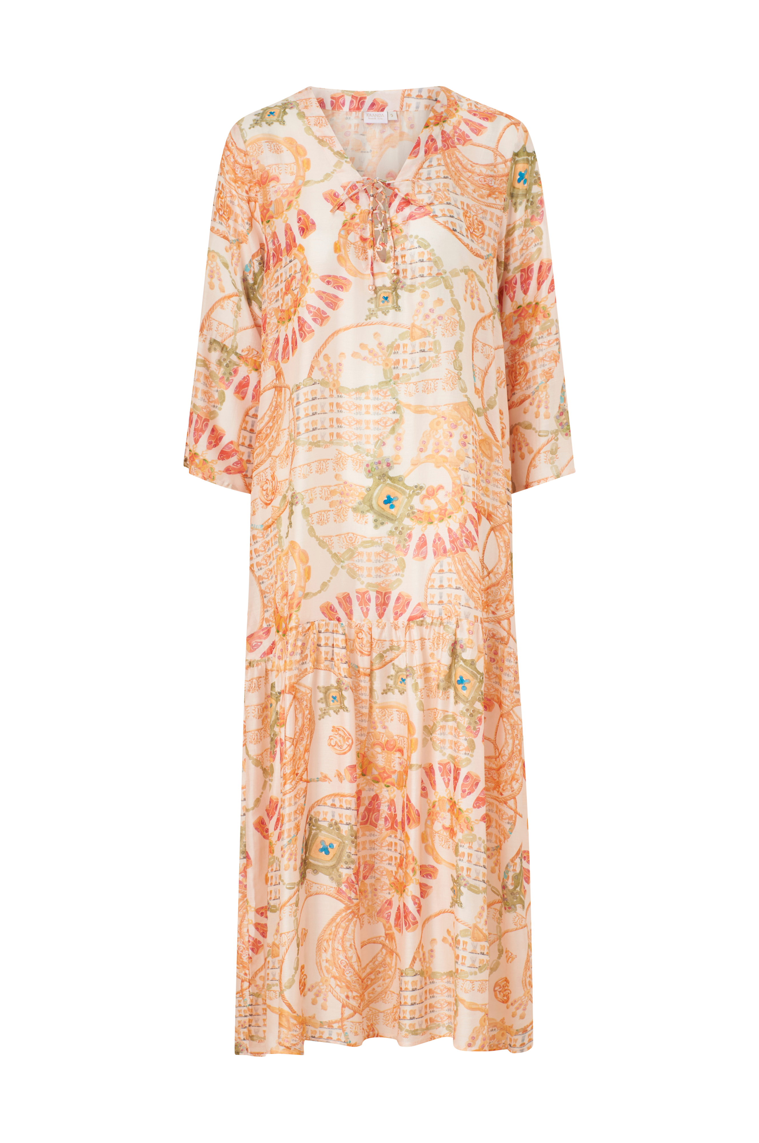 • Pitkä, kuvioitu mekko ohuesta, kivasta viskoosista hohdolla