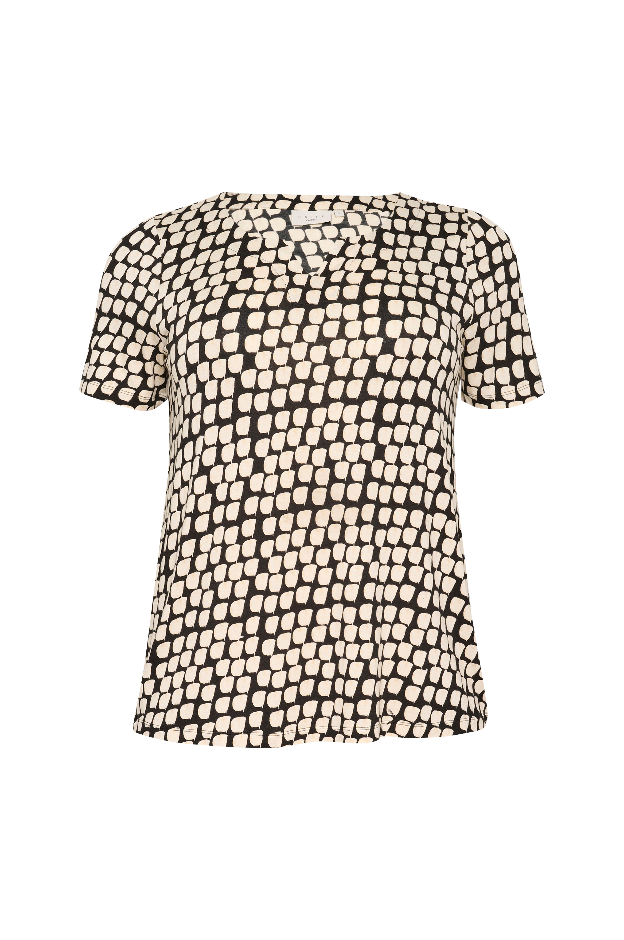 • Kuvioitu trikootoppi• Pyöreä pääntie v-muotoisella halkiolla edessä• Lyhyt hiha• Plus-koot
