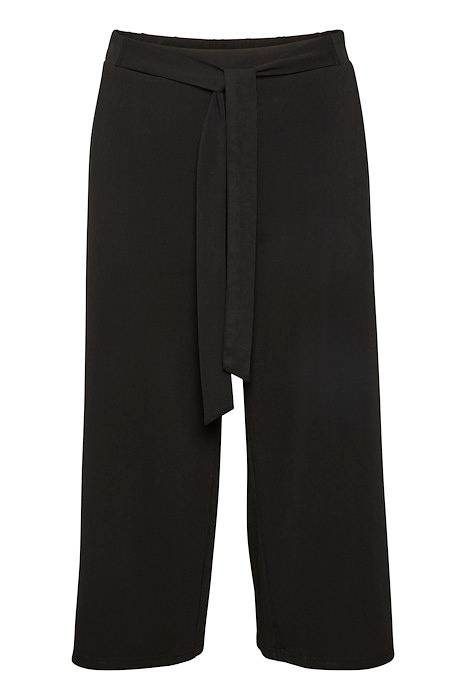 Väljä ja suora malli pehmeästi laskeutuvaa jerseytä. Päälleommeltu vyötärönauha, jossa upotettu kuminauha takana ja kiinniommeltu solmimisvyö edessä. Kaksi viistoa etutaskua ja korkea halkio lahkeensuiden ulkosivulla. Lahkeen sisäpituus n. 53 cm koossa S.