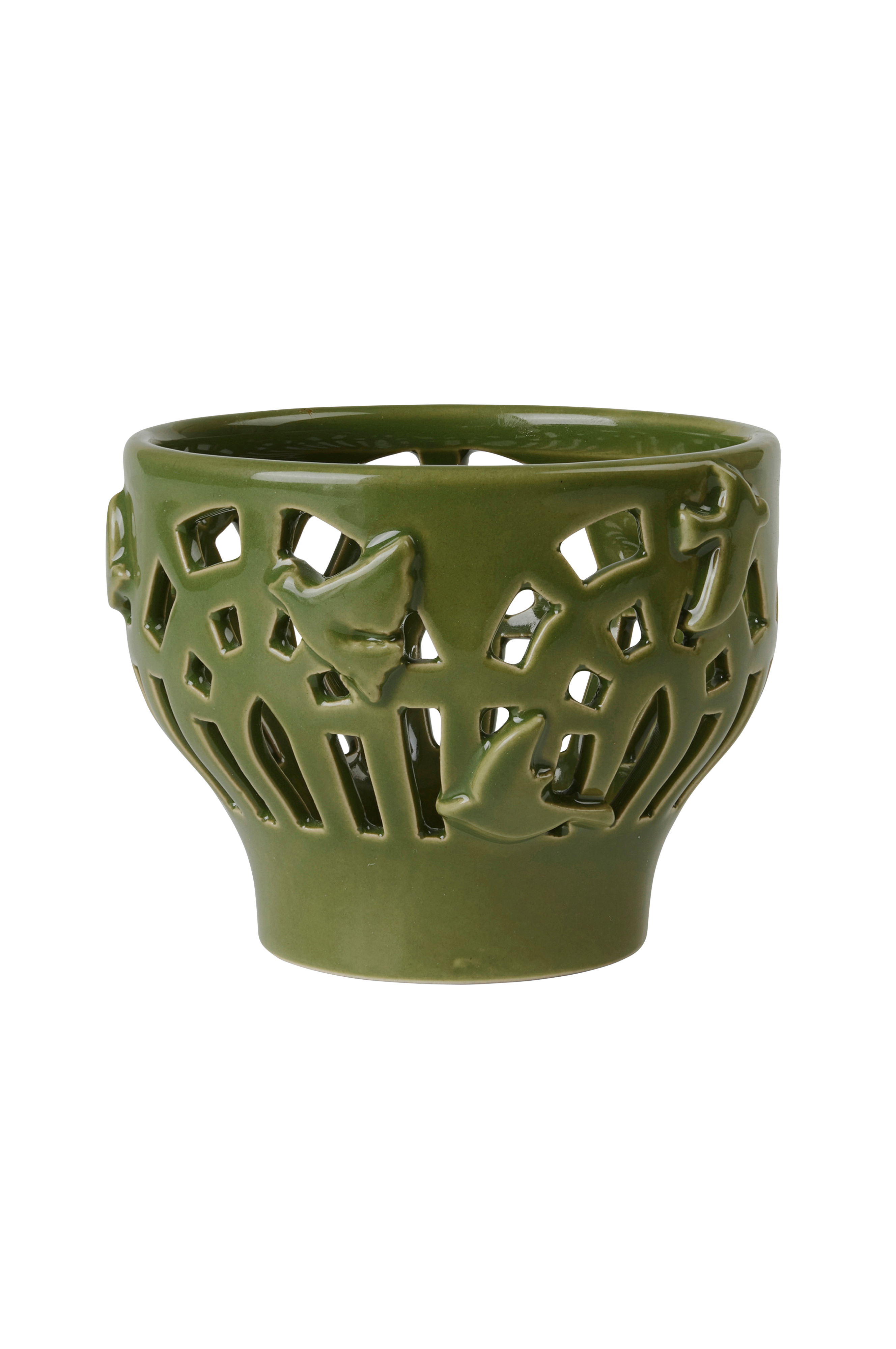 Hurmaava viherhuone-lämpökynttilälyhty on 7 cm:n korkuinen ja valmistettu keramiikasta. Se on lasitettu hienostuneella ja luonnollisella keväisten lehtien värisellä vihreällä lasitteella. Kynttilälyhdyssä on kapea pohja ja pienen kupin tapaan ylöspäin levenevät sivut, mikä muodostaa luonnollisen paikan lämpökynttilälle. Lämpökynttilälyhty on saanut inspiraatiota viherhuoneen valosta, arkkitehtuurista ja rakenteesta, ja klassisen muotoiset käsintehdyt koristeet edustavat viherhuoneen monia pieniä ikkunoita. Lämpökynttilän valo virtaa ikkunoista ja luo lämmintä ja kodikasta tunnelmaa. Jokainen pieni leikkaus on tehty käsin, kuten ulkosivua koristavat tyylitellyt linnutkin. Kählerin kaunista keramiikkakäsityötä parhaimmillaan.