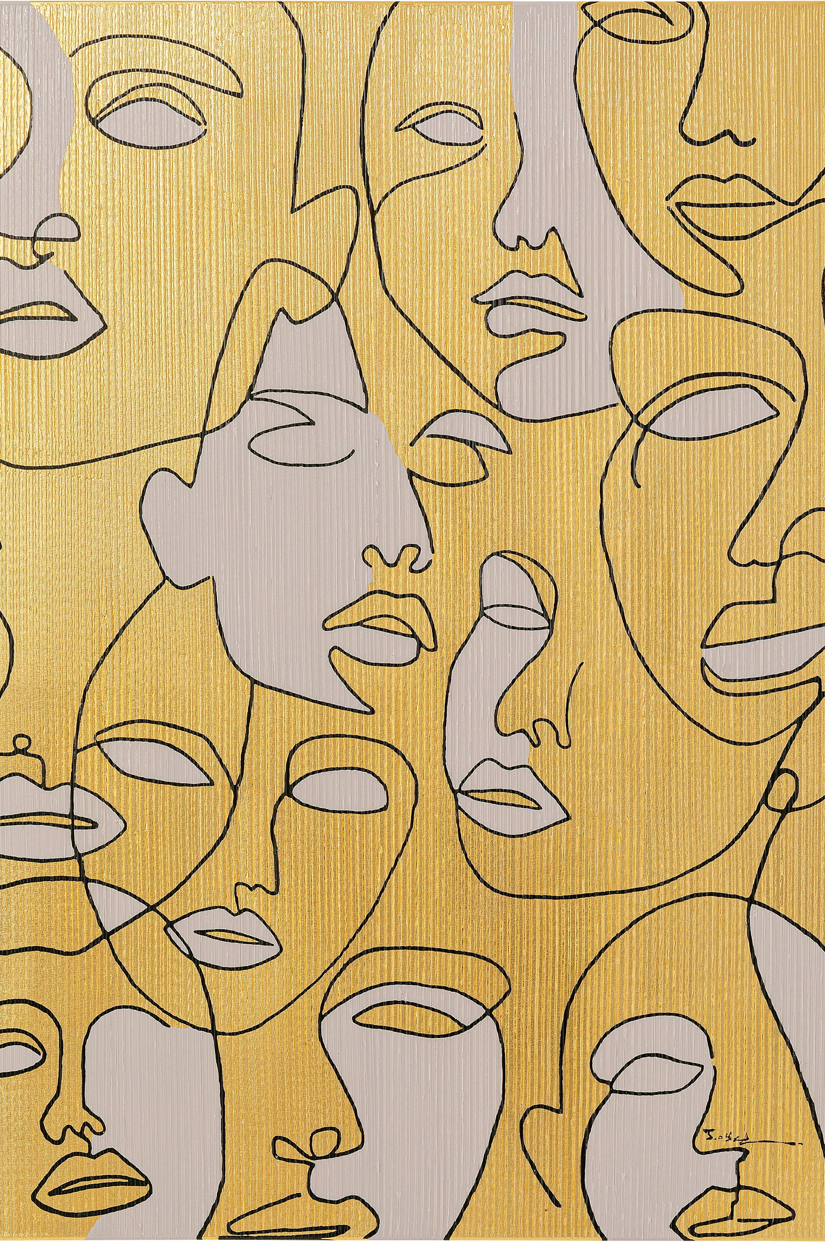 Seinätaide antaa kodillesi uudet kasvot - tässä kanvaasille maalatussa taulussa on useita kasvoja. Abstraktin ja minimalistisen viivapiirroksen avulla osoitat makusi, trendin tunnun ja asetat taiteellisen aksentin jokaiselle seinälle. Runsaat kullanväriset pinnat lisäävät ripauksen glamouria.