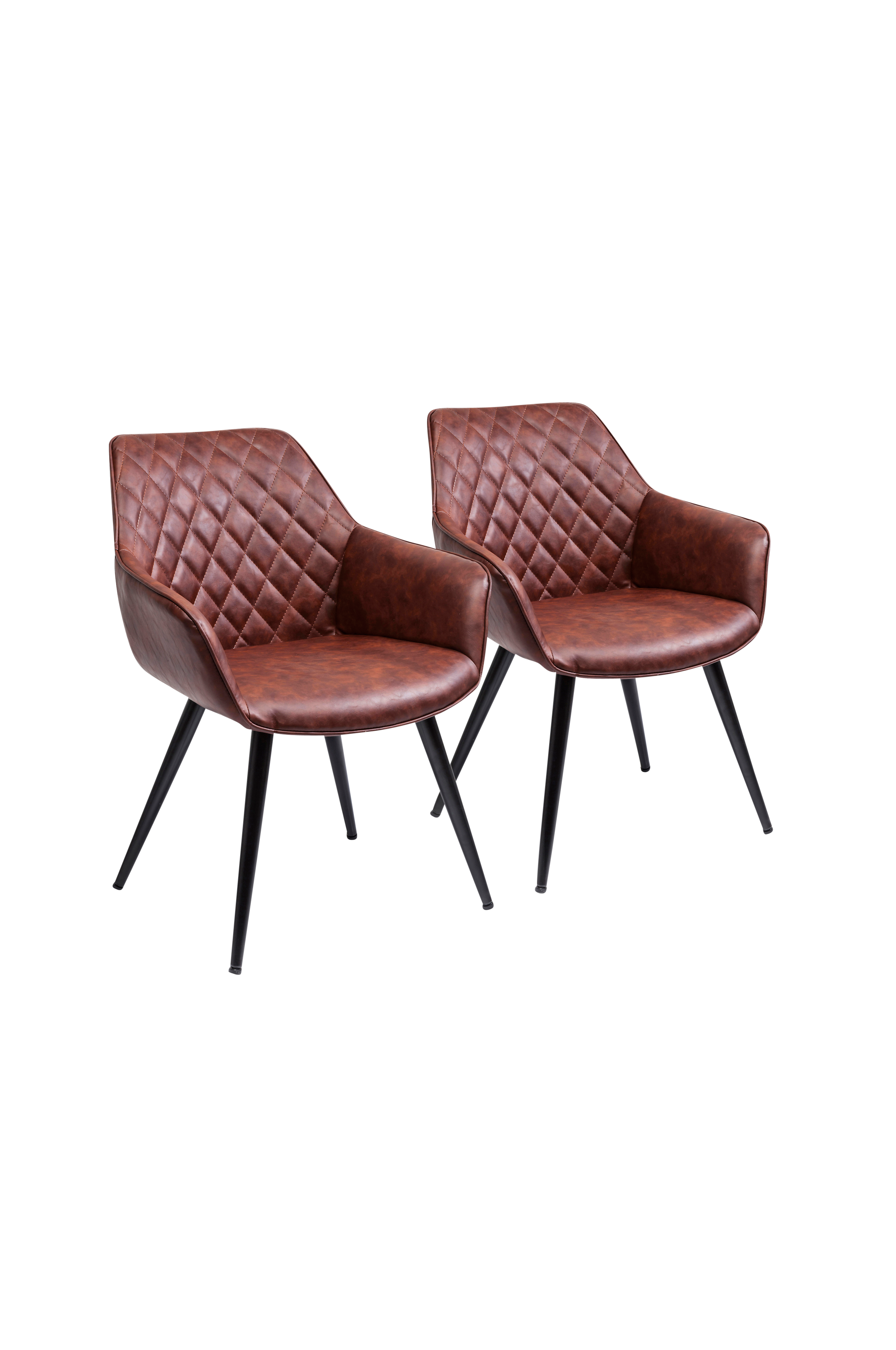 Tyylikäs ja mukava verhoiltu tuoli, jossa käsinojat ja hurmaavaa retrohenkeä. Levenevät jalat ja helppohoitoinen ruskea vintage-tekonahkaverhoilu. Tuolissa on myös koristeelliset tikkaukset. Harry on ihanteellinen pöytäseuralainen illalliselle.