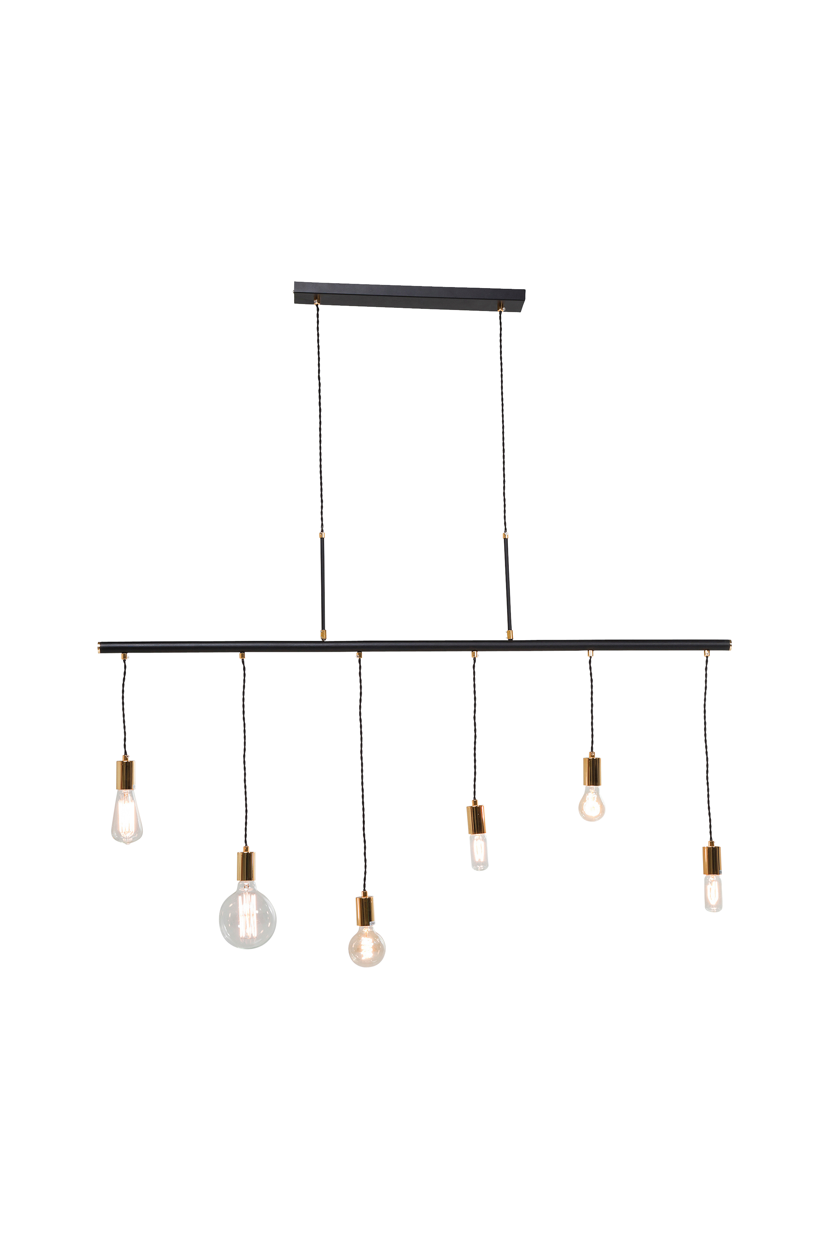 Ylistys hehkulampulle. Kaikki voisi olla helpompaa kuin onkaan. Kattovalaisin muistuttaa meitä tästä tosiasiasta pelkistetyllä muotoilullaan, jossa ei ole mitään ylimääräistä! Upean valaisimen keskiössä ovat hehkulamput, jotka antavat lämpimän valon ja luovat tyylikkään visuaalisen vaikutelman. Musta runko luo hillityn vaikutelman olematta kuitenkaan liian pelkistetty. Kullanväriset yksityiskohdat sointuvat täydellisesti ylellisiin kullanvärisiin lampunpidikkeisiin. Kaikki näkyvillä olevat johdot ovat kangaspäällysteisiä. Pole Six on tavallisuudesta poikkeava valaisin, joka hurmaa ylellisen hienostuneella, pelkistetyllä muotoilullaan. Se luo näyttävän vaikutelman ruokapöydän tai sohvapöydän yläpuolella. - Huom! Valaisin myydään ilman valonlähteitä.
