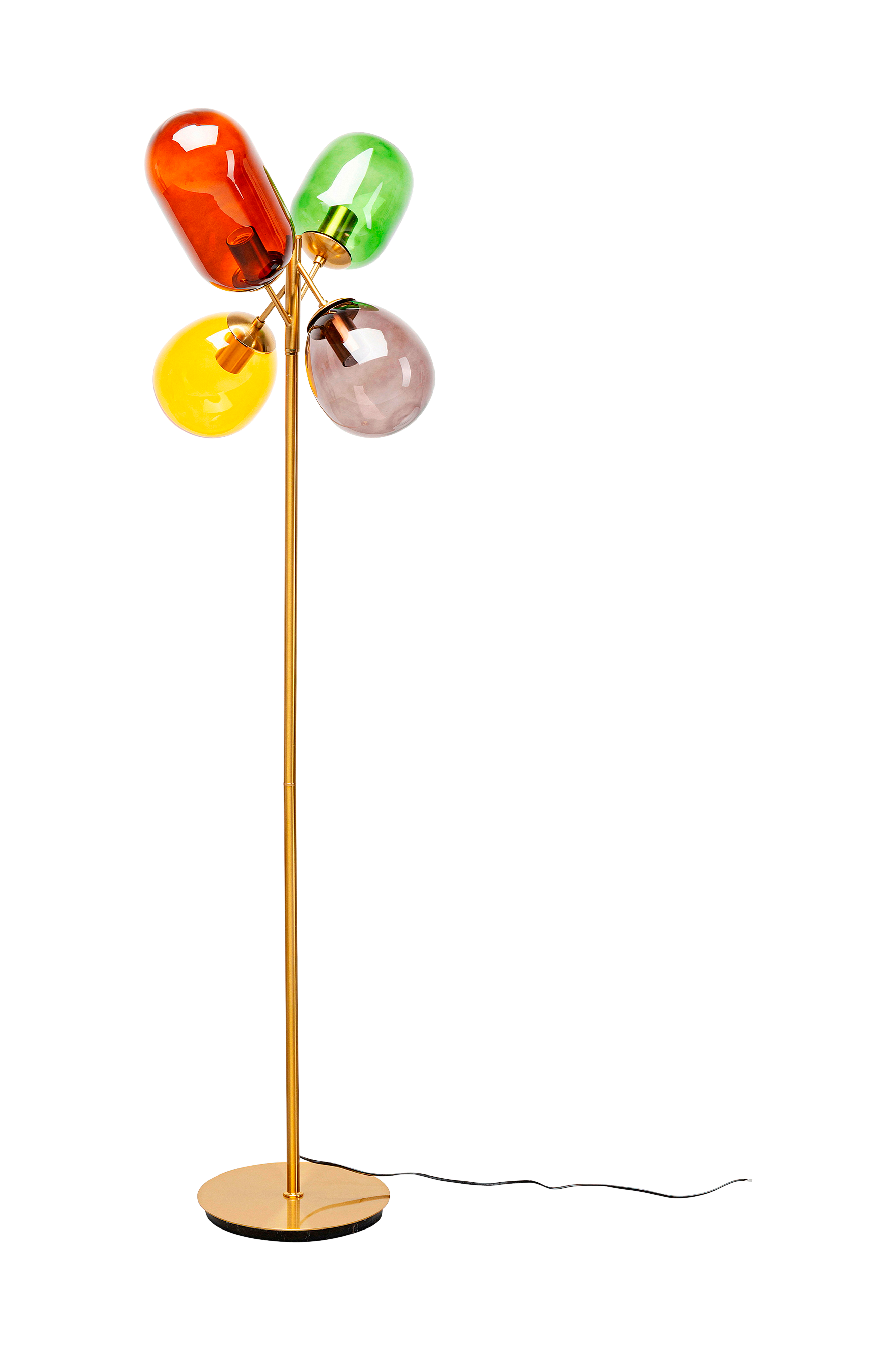 Todellinen valaistustaideteos, jossa on wow-tekijä - tämä lattiavalaisin leikittelee väreillä, muodoilla ja mielikuvituksella. Neljä lasivarjostinta näyttävät leijuvilta ilmapalloilta, jotka hohtavat pehmeissä sävyissä hunajankeltaisesta savunharmaaseen ja luovat huoneeseen unenomaisen tunnelman. Hienostunut galvanoidun lasin ja messinkinvärisen kehyksen yhdistelmä tuo eleganssia peliin ja vie muotoilun uudelle tasolle. Olipa kyseessä sitten tyylikäs statement olohuoneessa tai katseenvangitsija makuuhuoneessa - tämä valaisin asettaa kohdennettuja korostuksia ja tuo modernia taidetta sisustukseen. Erityisen tehokas puhtaissa ympäristöissä tai retro-yhdistelmän kohokohtana.