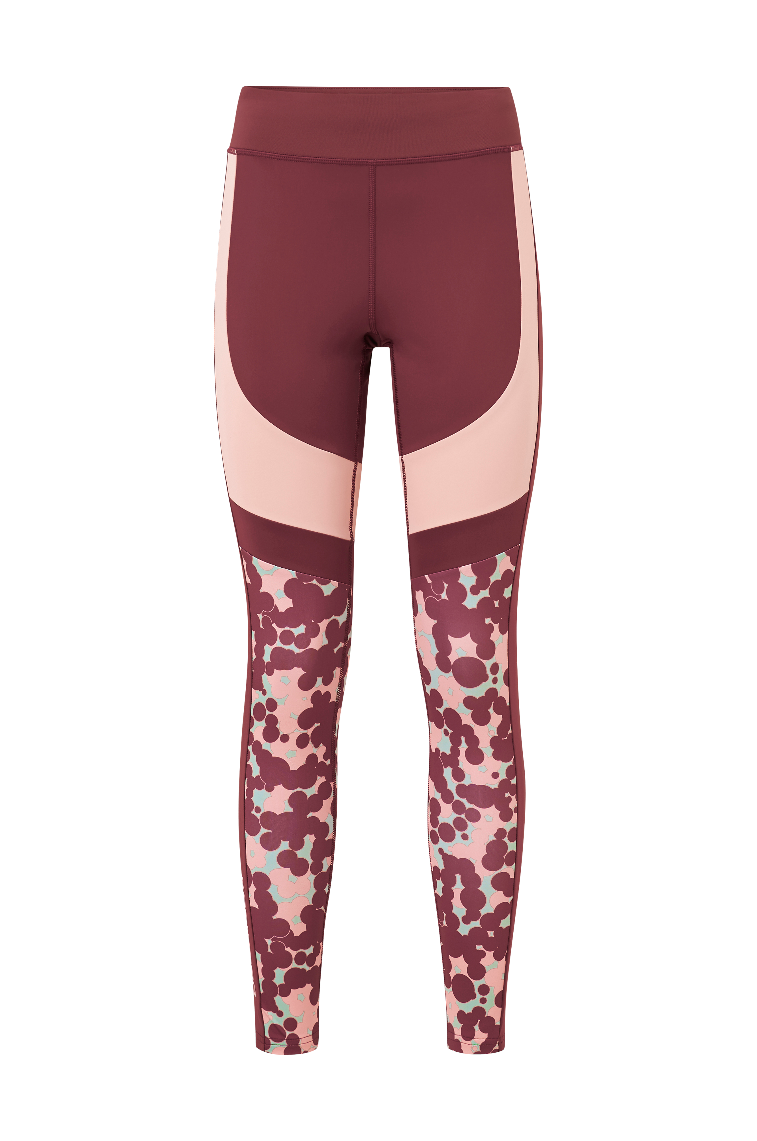 Kuviolliset treenitrikoot neljään suuntaan joustavaa materiaalia. Joustava vyötärönauha, jonka sisäpuolella nyöri.