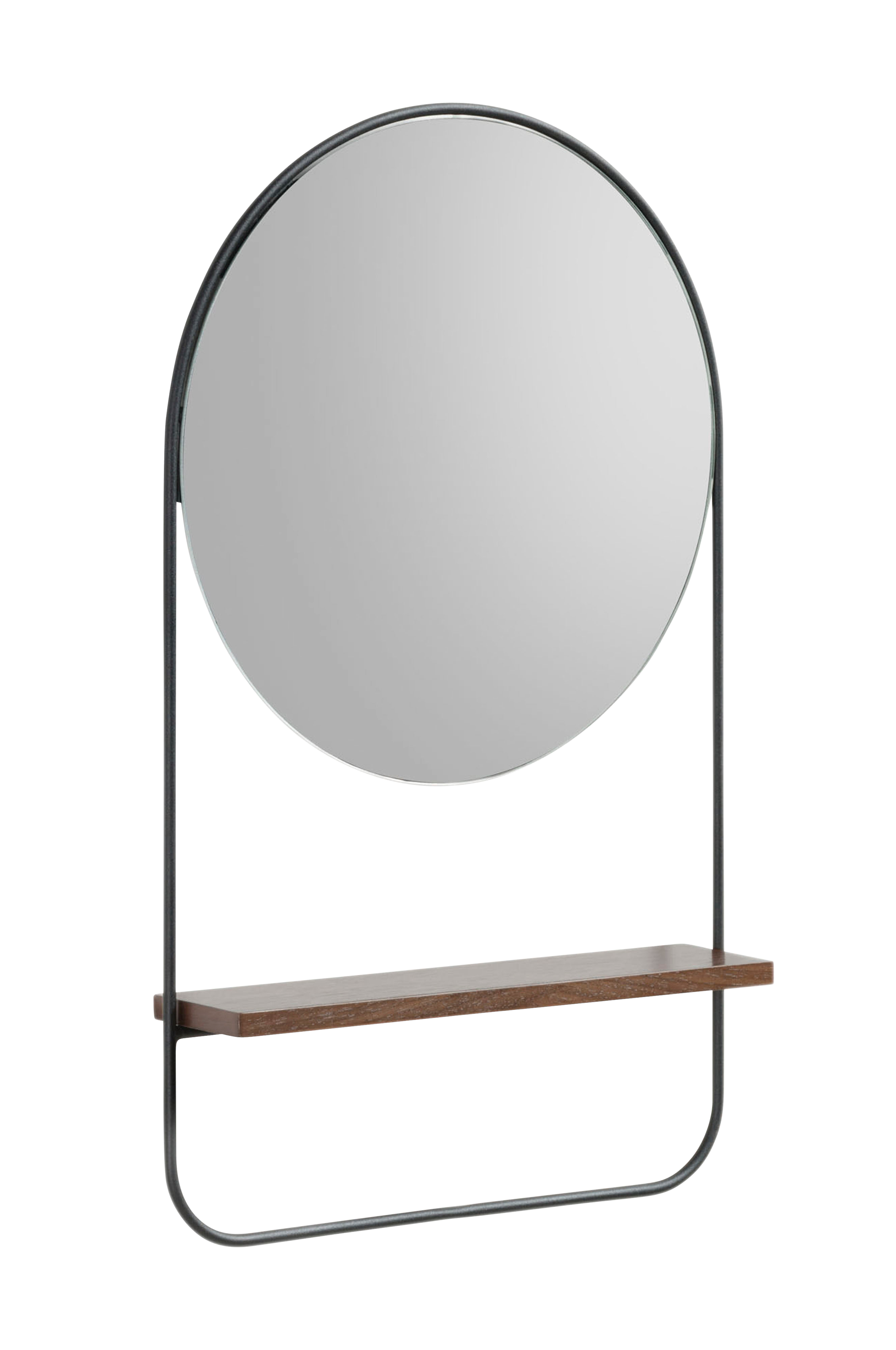 Marcolina-peilin halkaisija on 36 cm. Kehys mattapintaista, mustaksi maalattua metallia. Raamin sisällä, peilin alla on tammiviilusta valmistettu hylly, jossa on pähkinänvärinen viimeistely. Hyllylle voi asettaa kauniita tavaroita tai asusteita. Leveys: 37 cm. Syvyys: 8 cm. Korkeus: 58 cm.