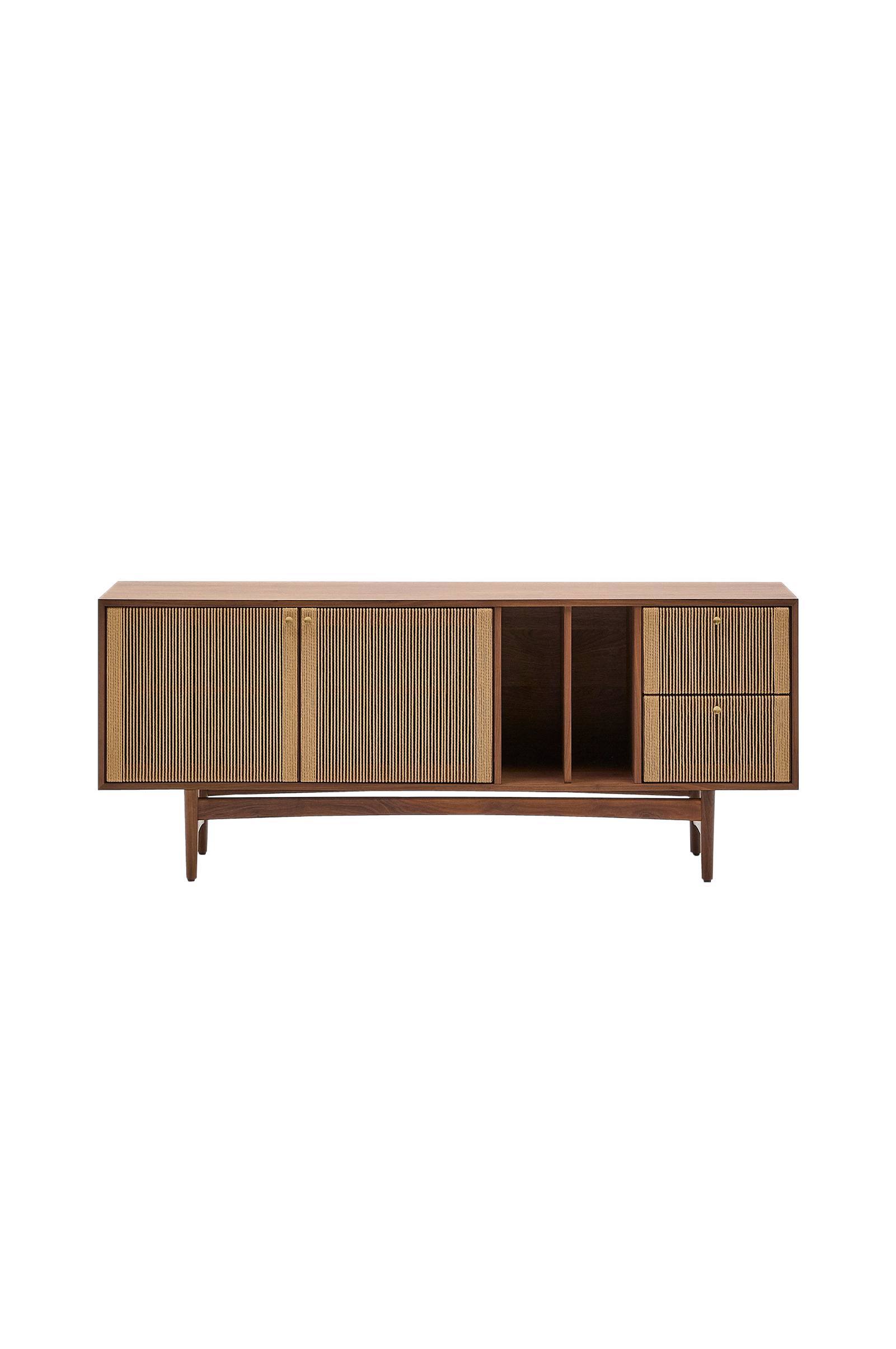 Ajaton elan yhdistää pähkinäpuun lämmön ja selkeälinjaisen muotoilun. Jokainen kappale on kauniisti muotoiltu taideteos, jossa käsin kudotut narun yksityiskohdat tuovat tiloihisi ripauksen maalaismaista eleganssia. Tuotteen leveys: 180cm. Tuotteen syvyys: 45cm.cm.