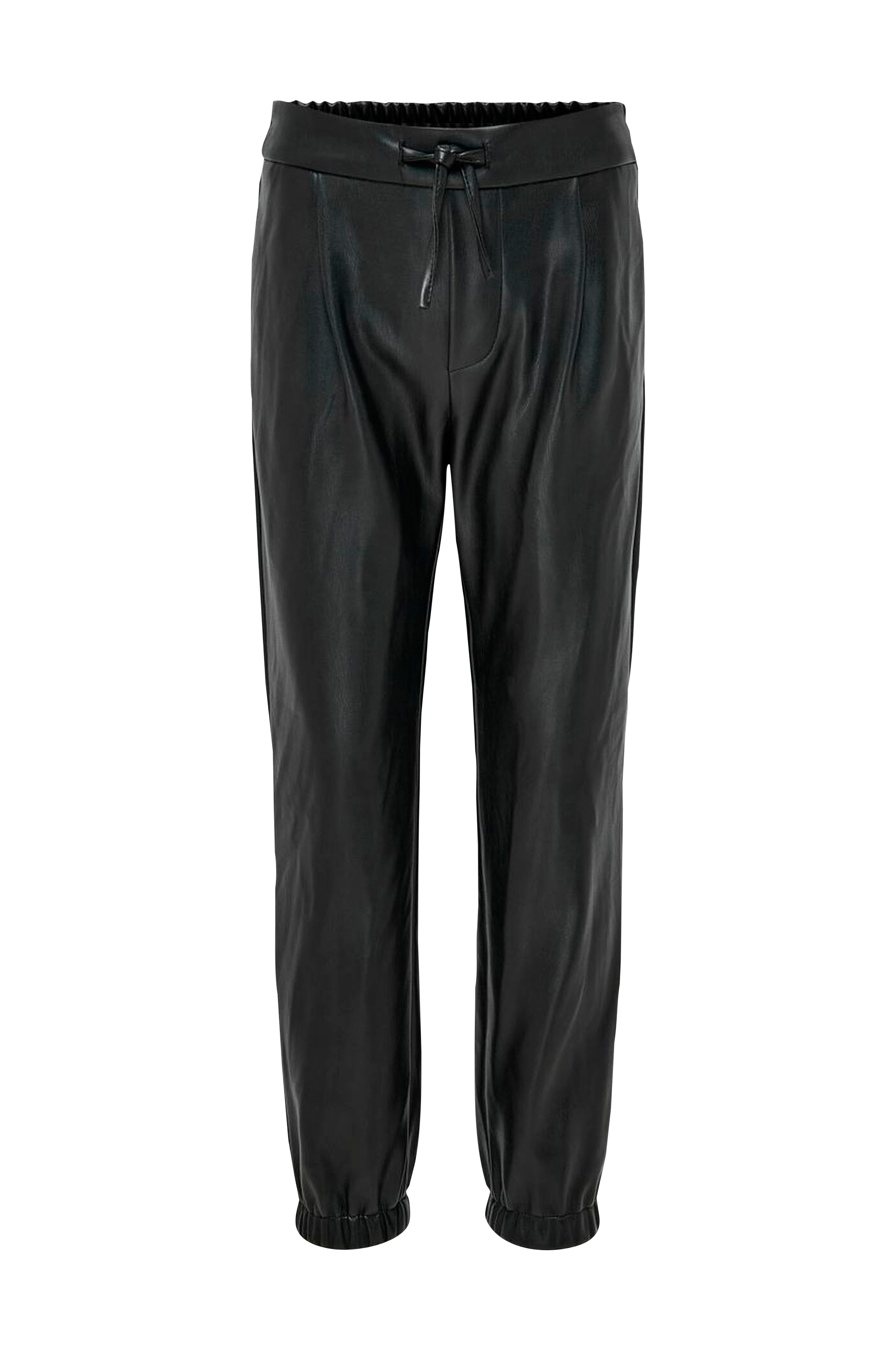 Kids Only konPoptrash Easy PU Pant -housut nahkajäljitelmää. Säädettävä vyötärönauha, jossa kuminauha takana ja nyöri sisäpuolella. Kaksi sivutaskua ja kaksi valetakataskua. Lahkeensuissa kuminauha.