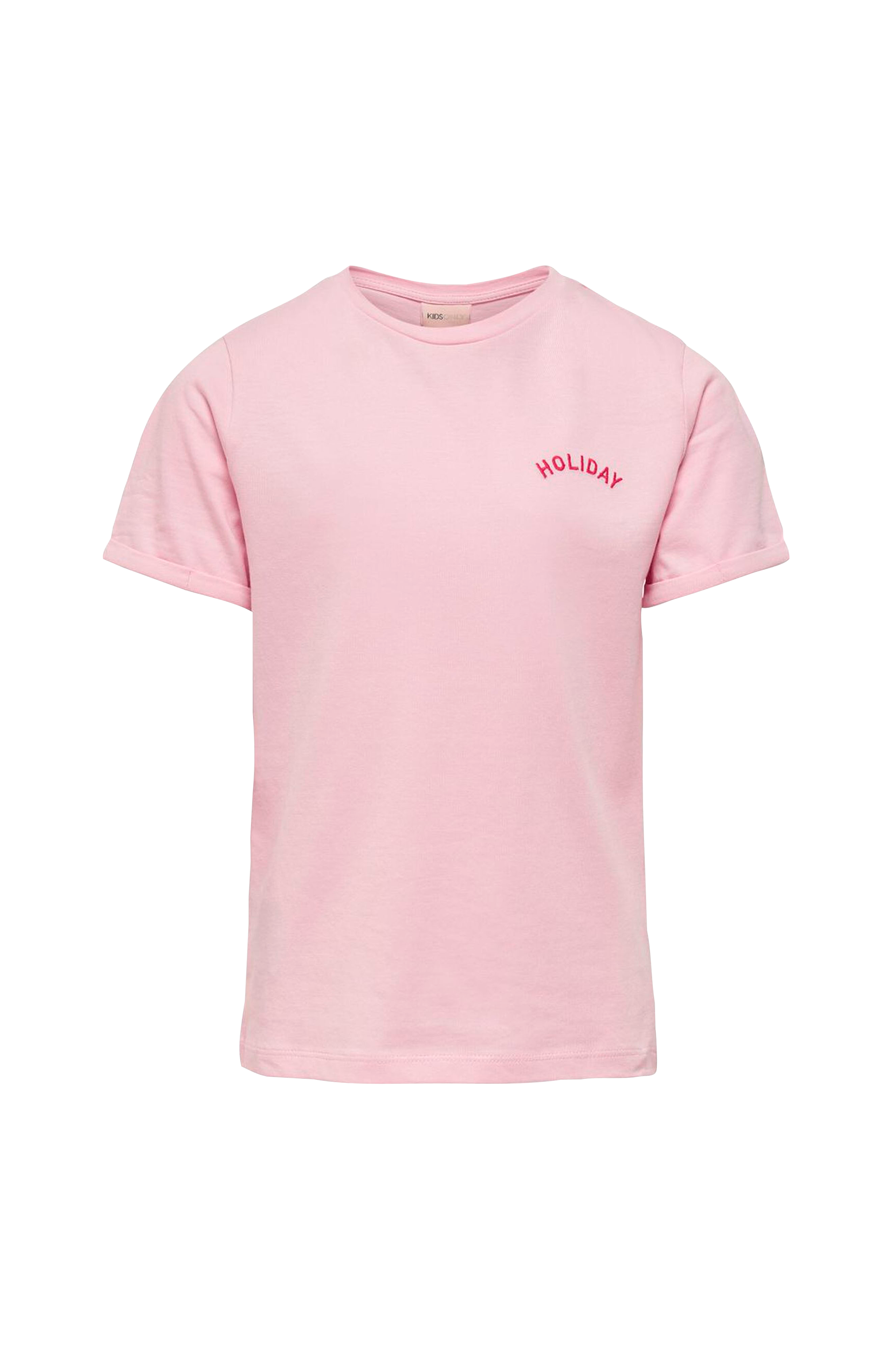Lyhythihainen pusero puuvillaa. Pyöreä pääntie ja kirjailu ylhäällä edessä. Hihansuissa kiinniommeltu käänne.