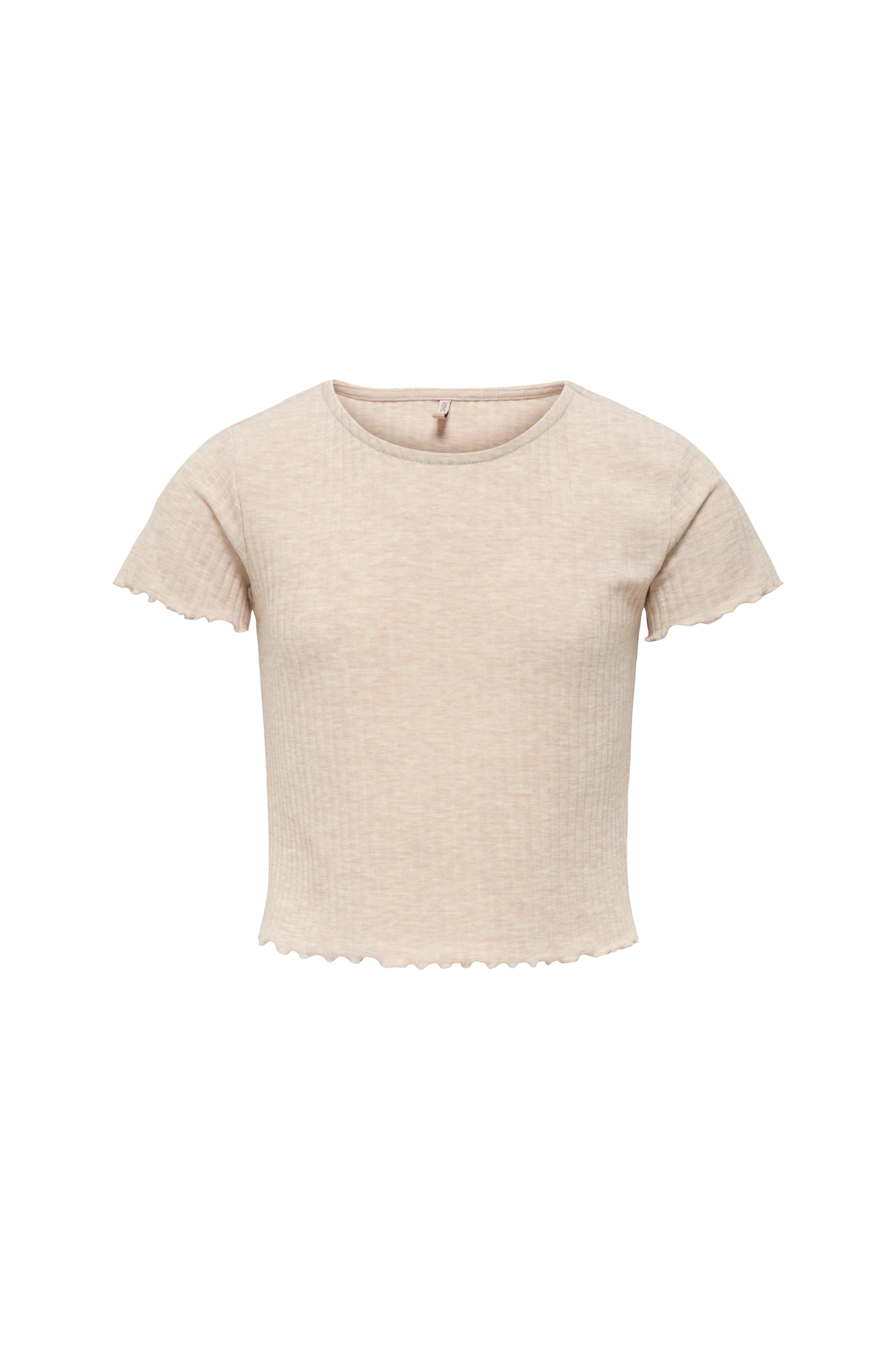 • Lyhythihainen toppi pehmeästä, ribatusta stretchtrikoosta• Pyöreä kaula-aukko• Aaltoilevat reunat
