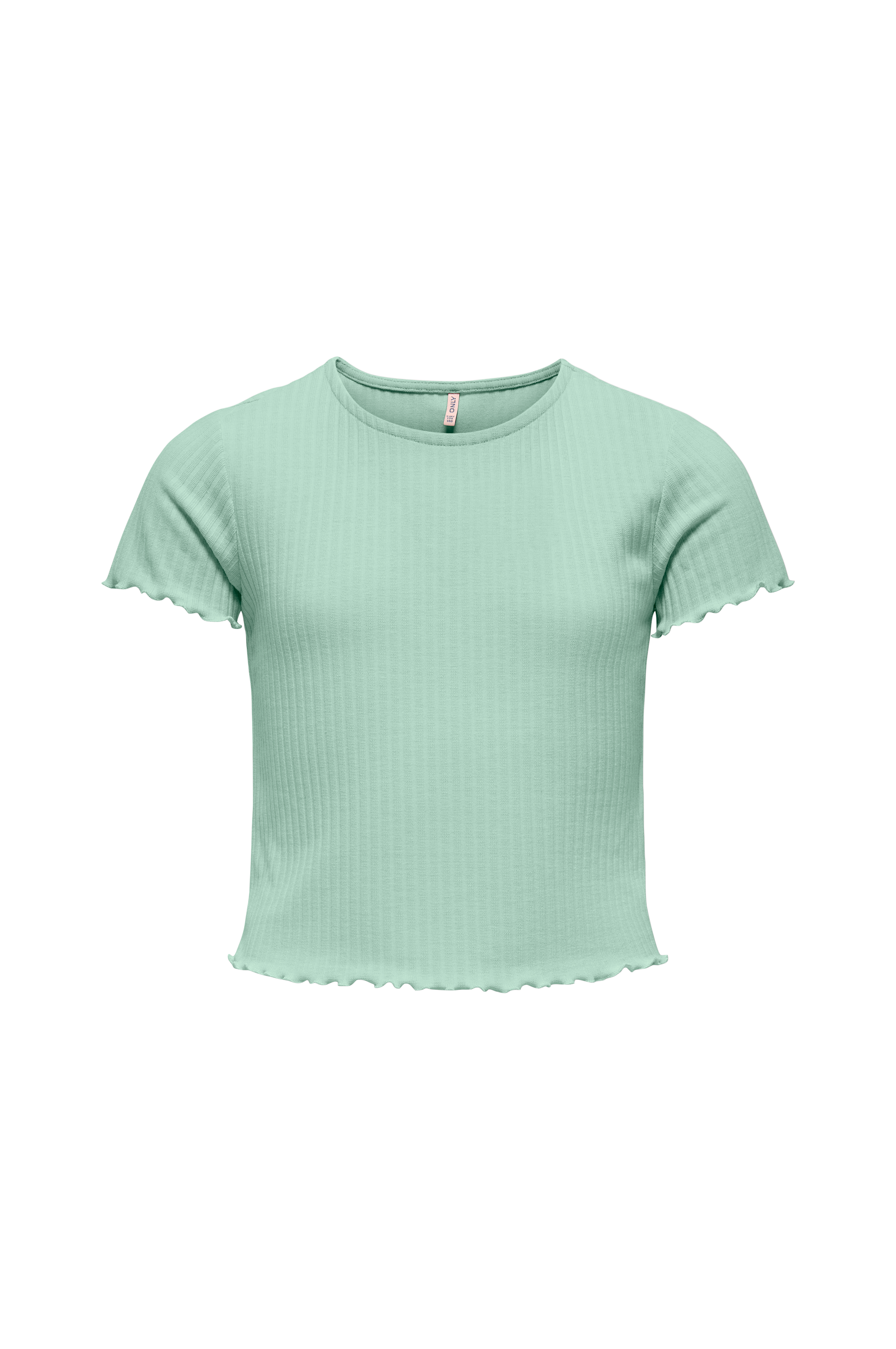 • Lyhythihainen toppi pehmeästä, ribatusta stretchtrikoosta• Pyöreä kaula-aukko• Aaltoilevat reunat