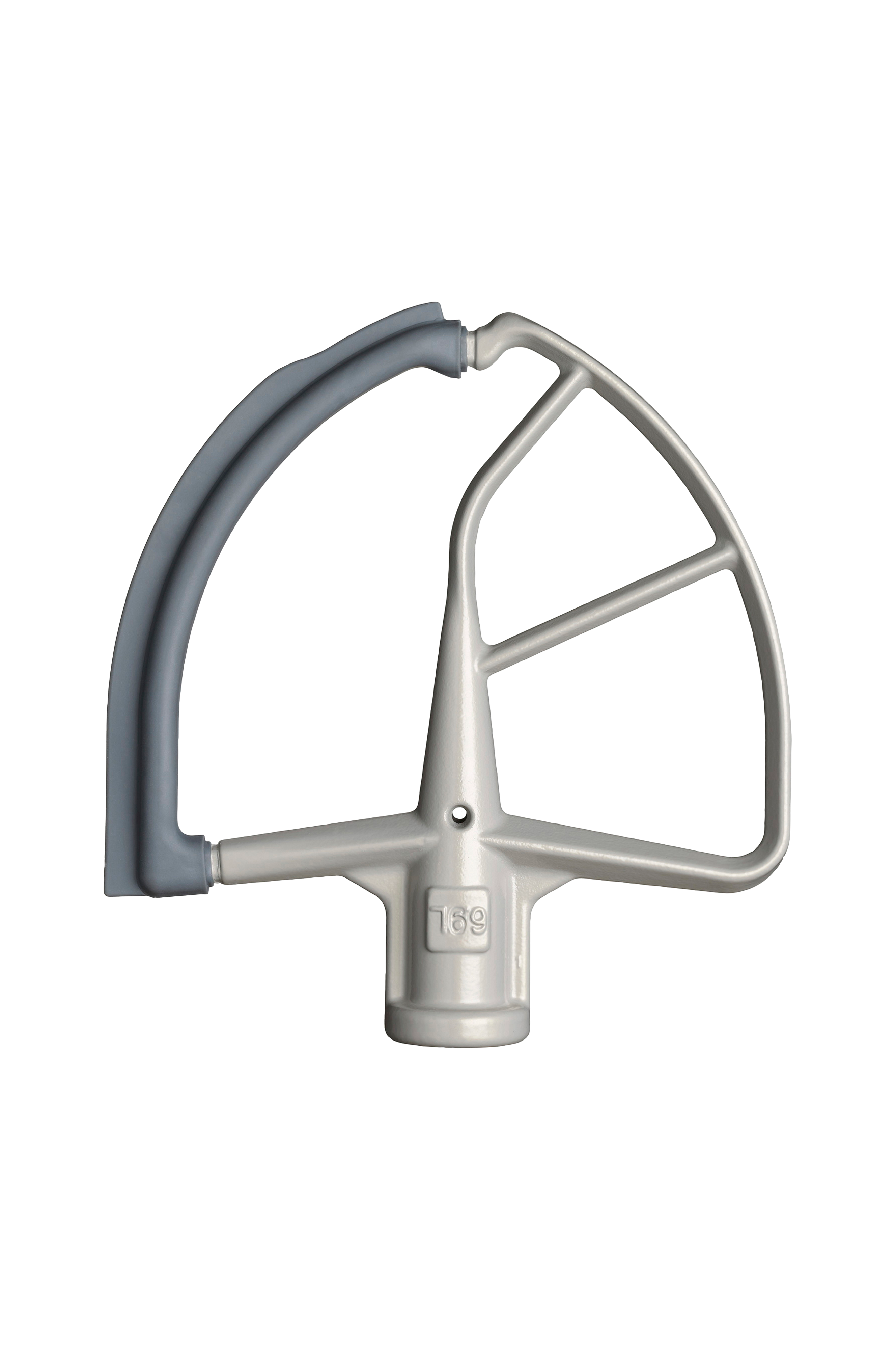 Litteä sekoitin, jossa on joustava silikonireuna ainesosien sekoittamiseen ja kaapimiseen suurissa keittiökoneissa, joissa on vipu.